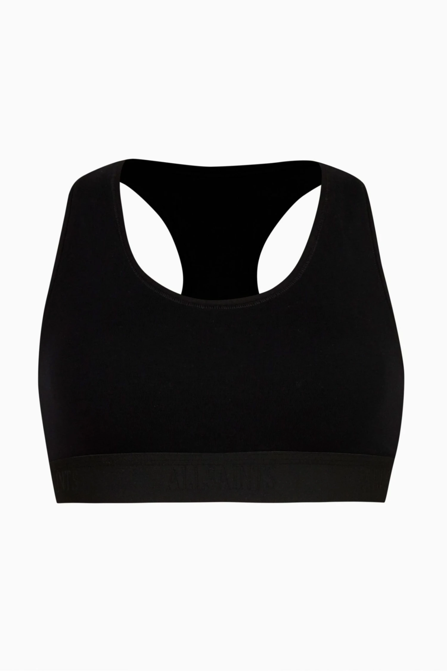 Bralet. Scoop neck. Racer back. Lined with self fabric. AllSaints branded elastic. ALLSAINTS cotton products support more sustainable cotton farming. Better Cotton is sourced via a system of Mass Balance.