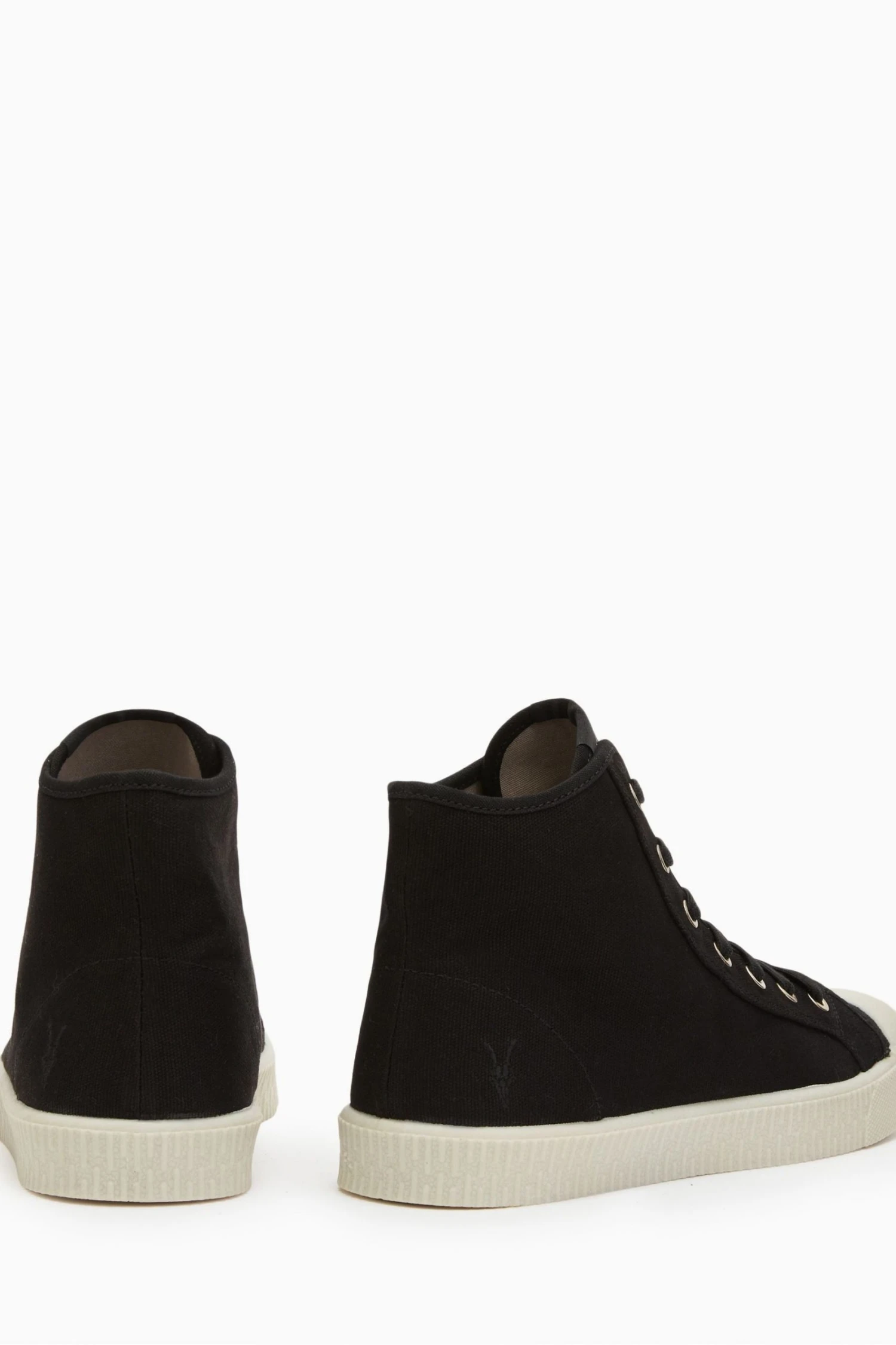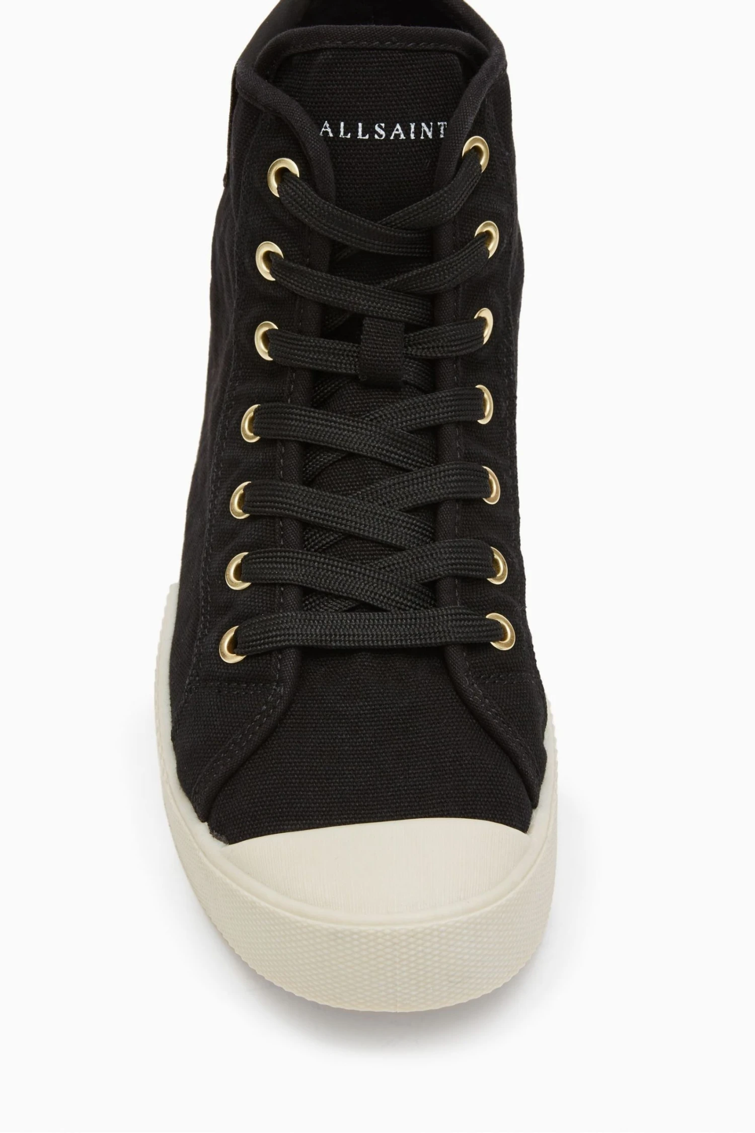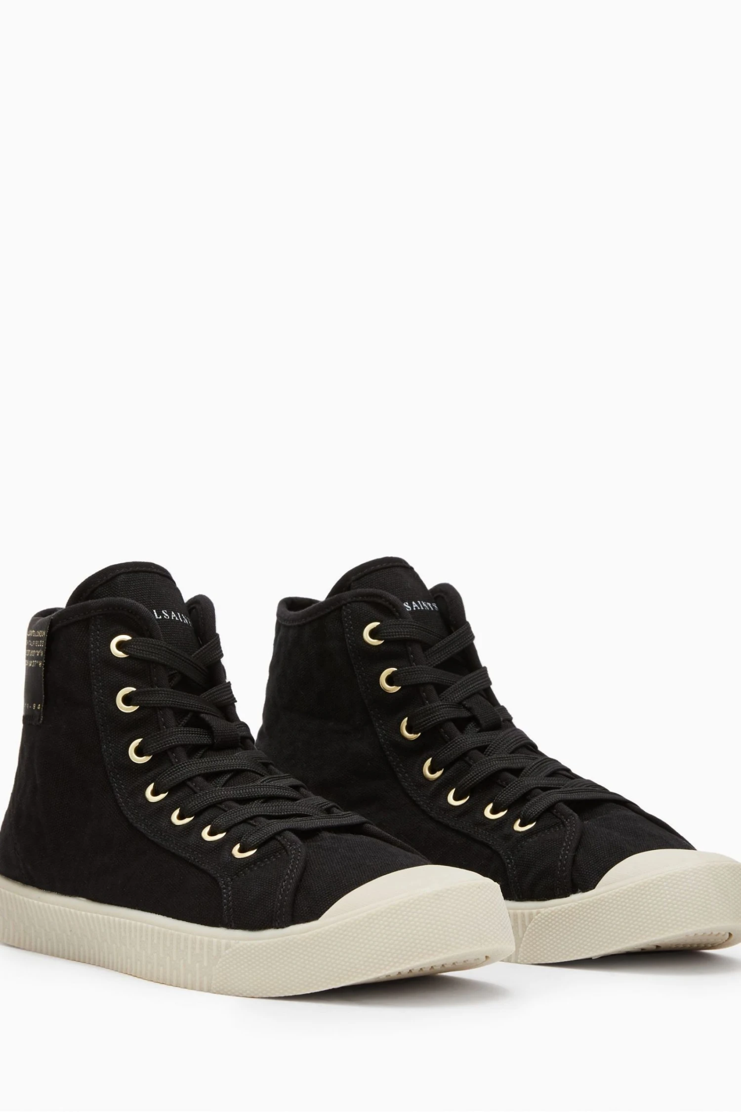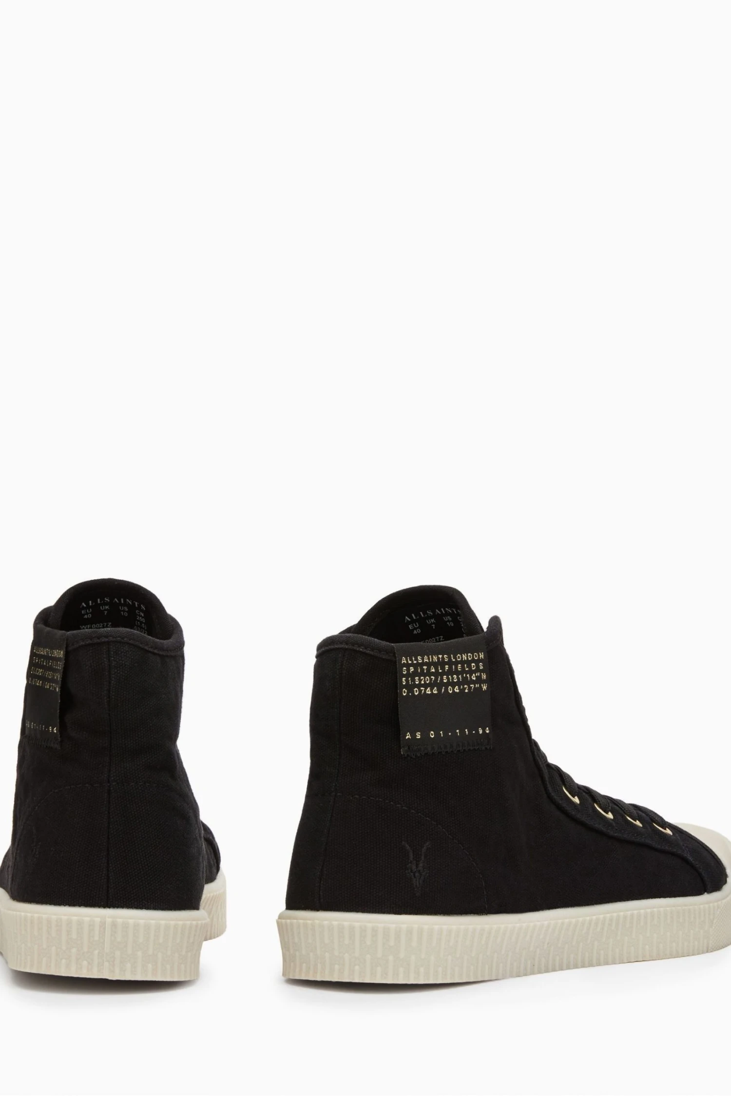 The lace-up, round toe, high top Canvas Injected Canvas Sneakers with AllSaints woven branded label over top line.
