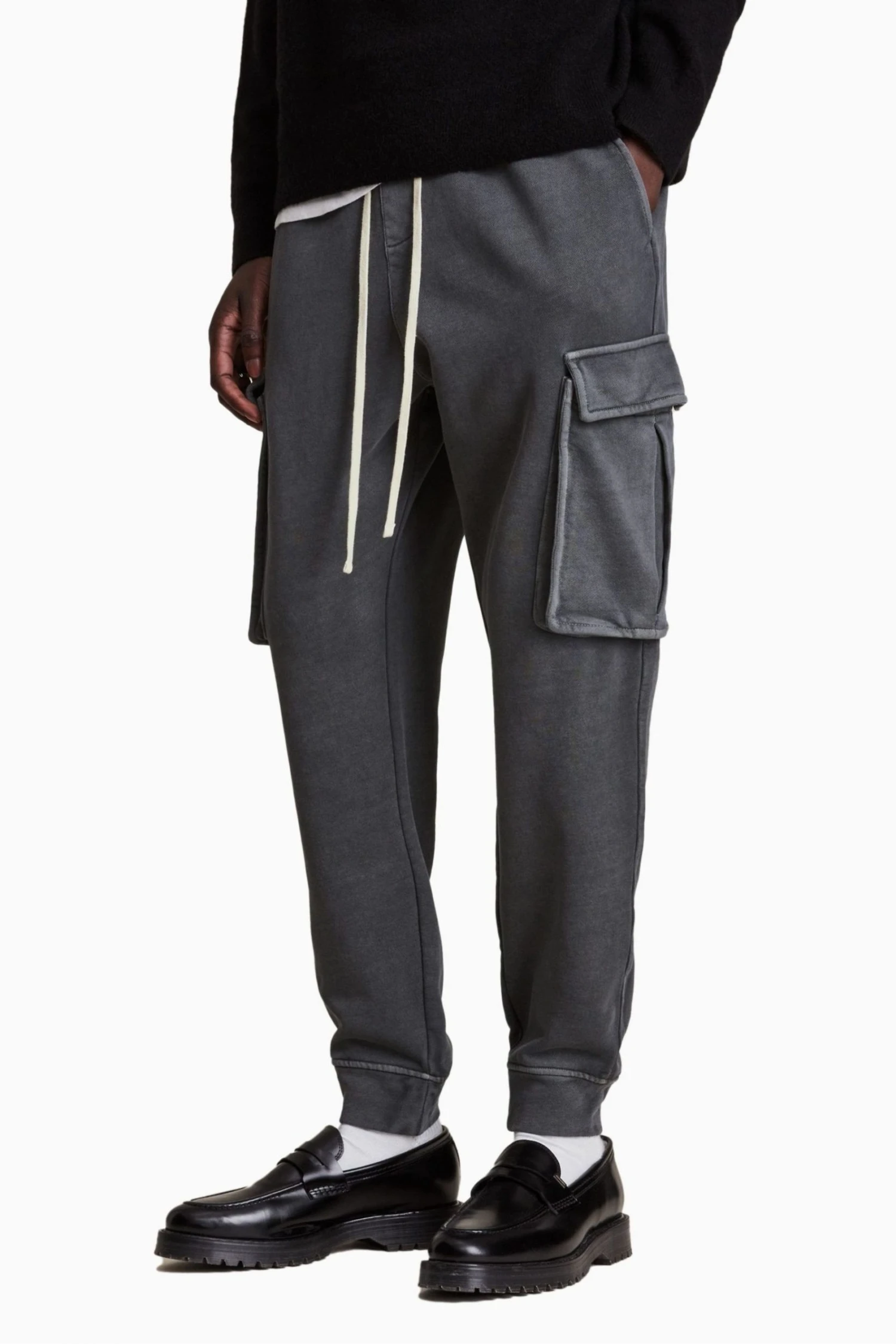 Featuring slim fit, regular, fadeout wash, self fabric elasticated waistband with drawcord, cargo pockets on side seams, front side pockets, back pockets and cargo pockets on side seams.
