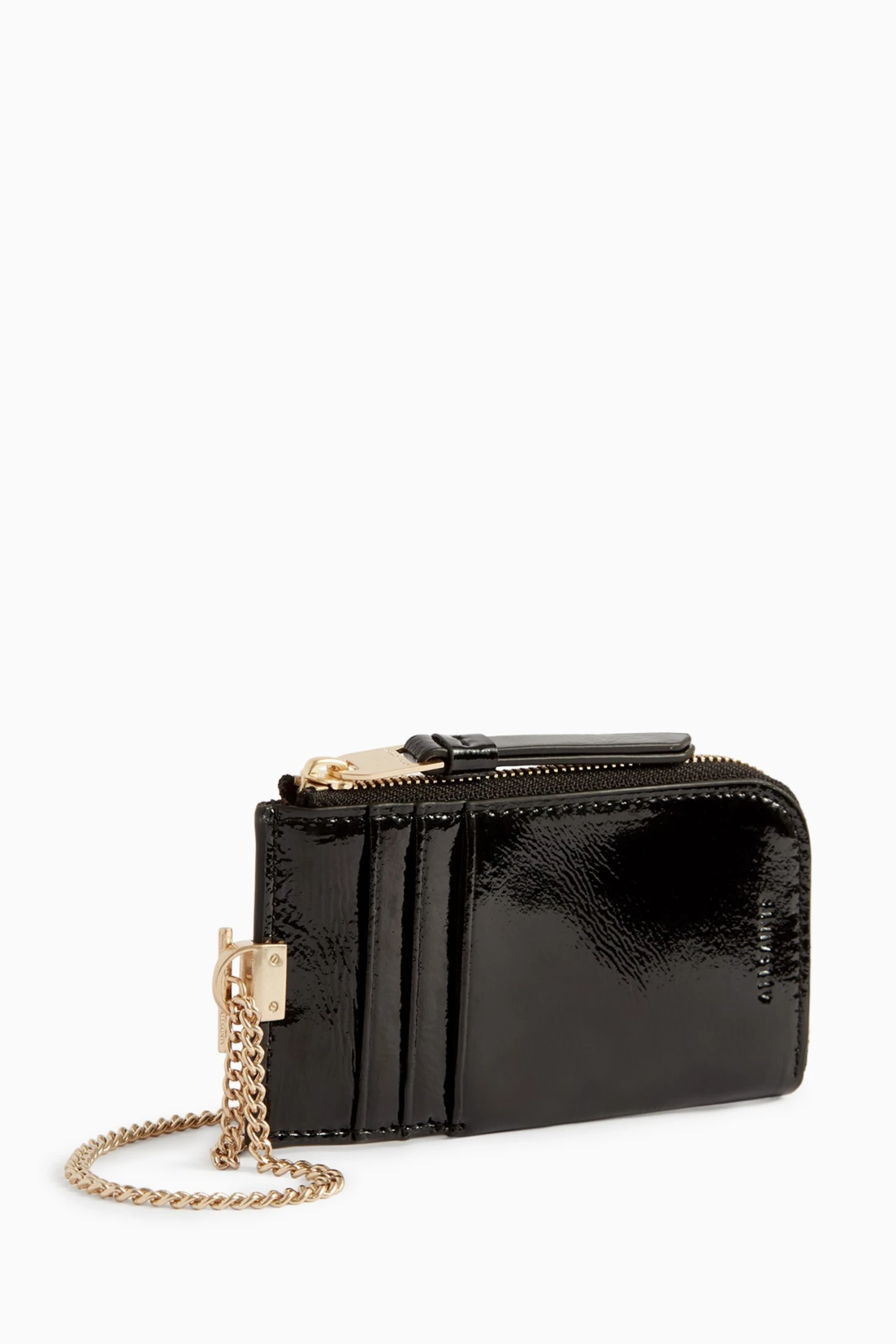 Featuring zip coin pocket, card slots, detachable chain, gold-tone hardware and cotton lining. Height:12cm x Width: 7cm x Depth: 1.5cm