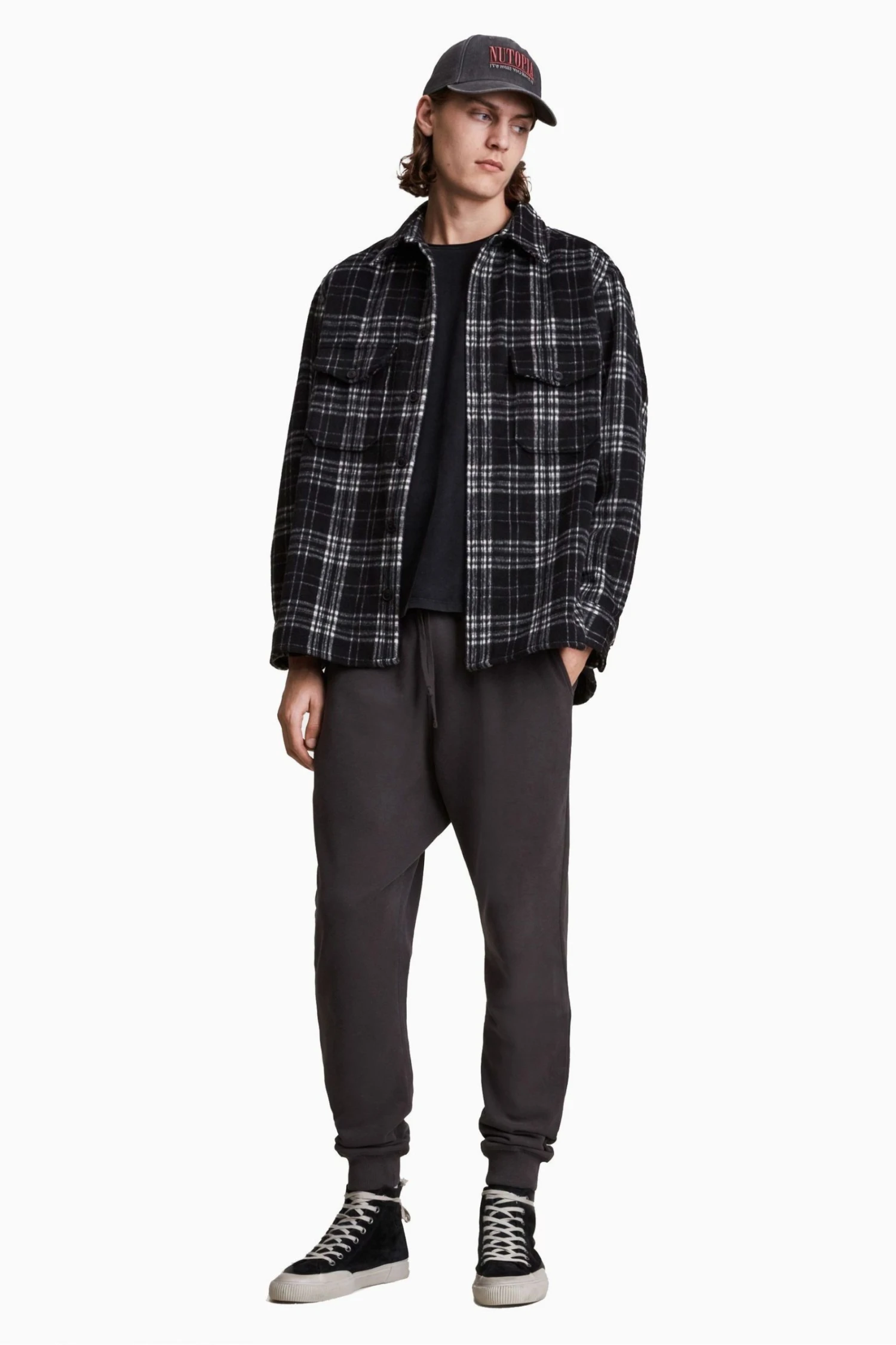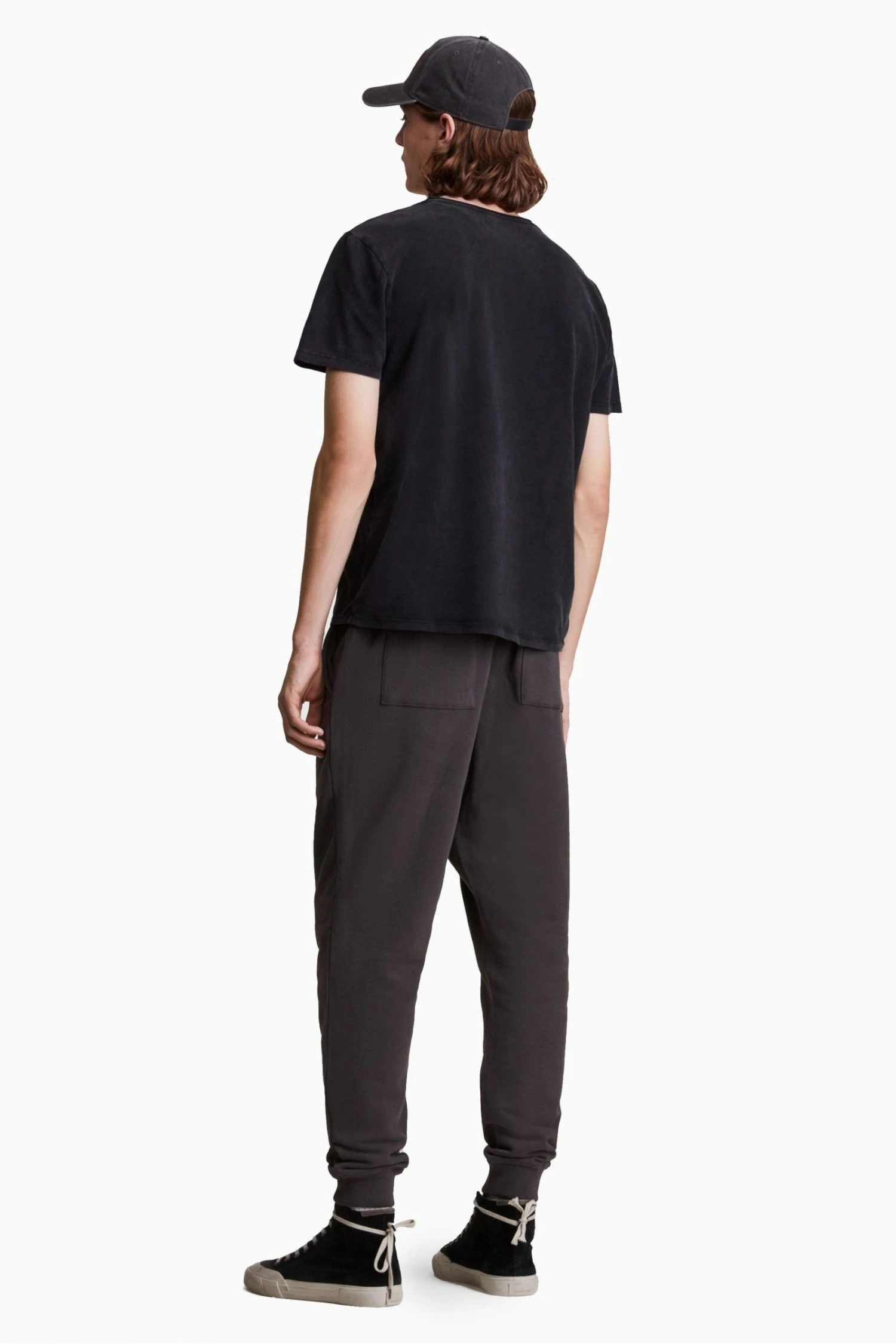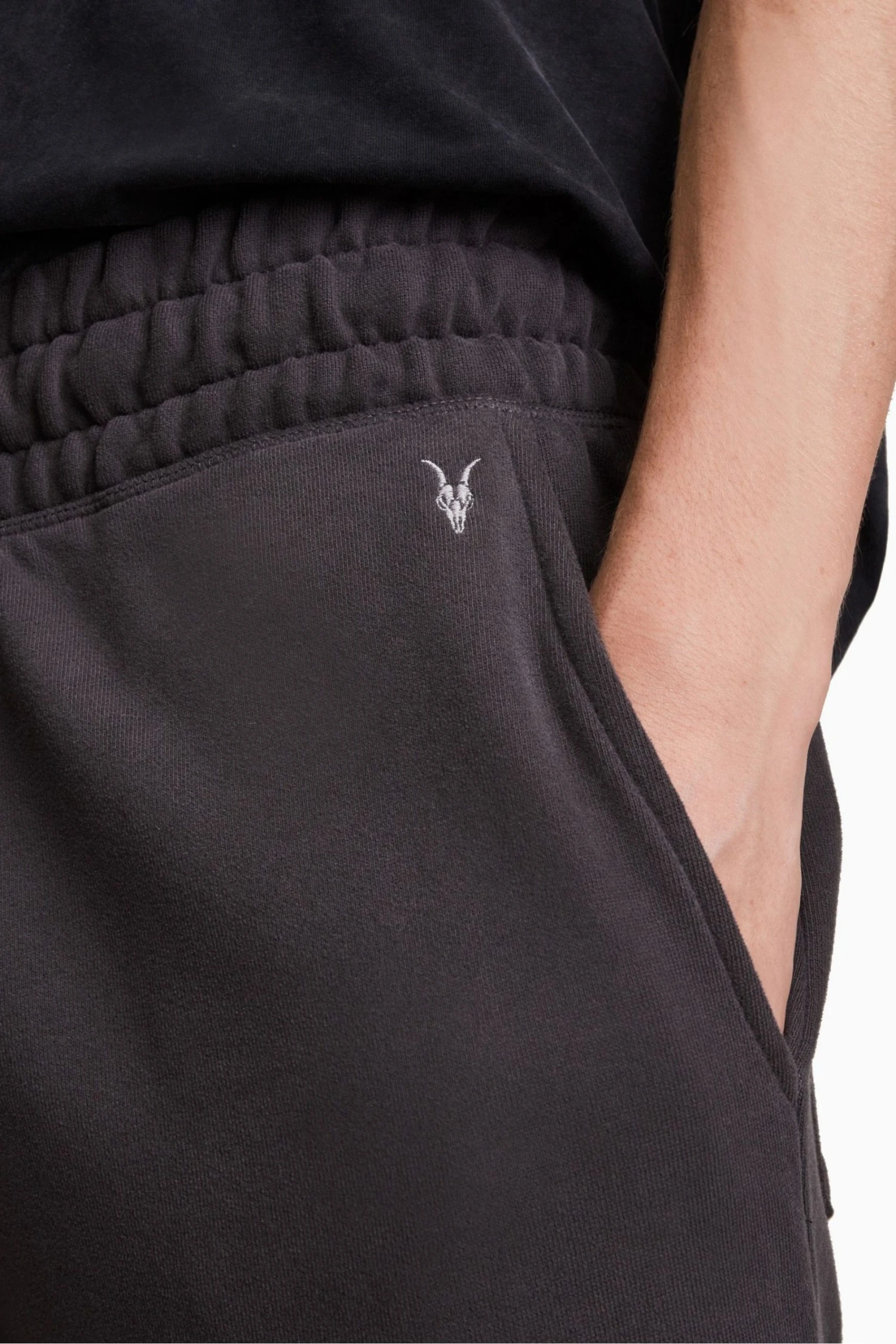 Slim fit. Elasticated waistband in self fabric with drawcords, flatlock stitch to waistband, front and back rise, inside left and cuff seams, ramskull embroidery. Side and Back Pocket. Mid rise. Slim leg.