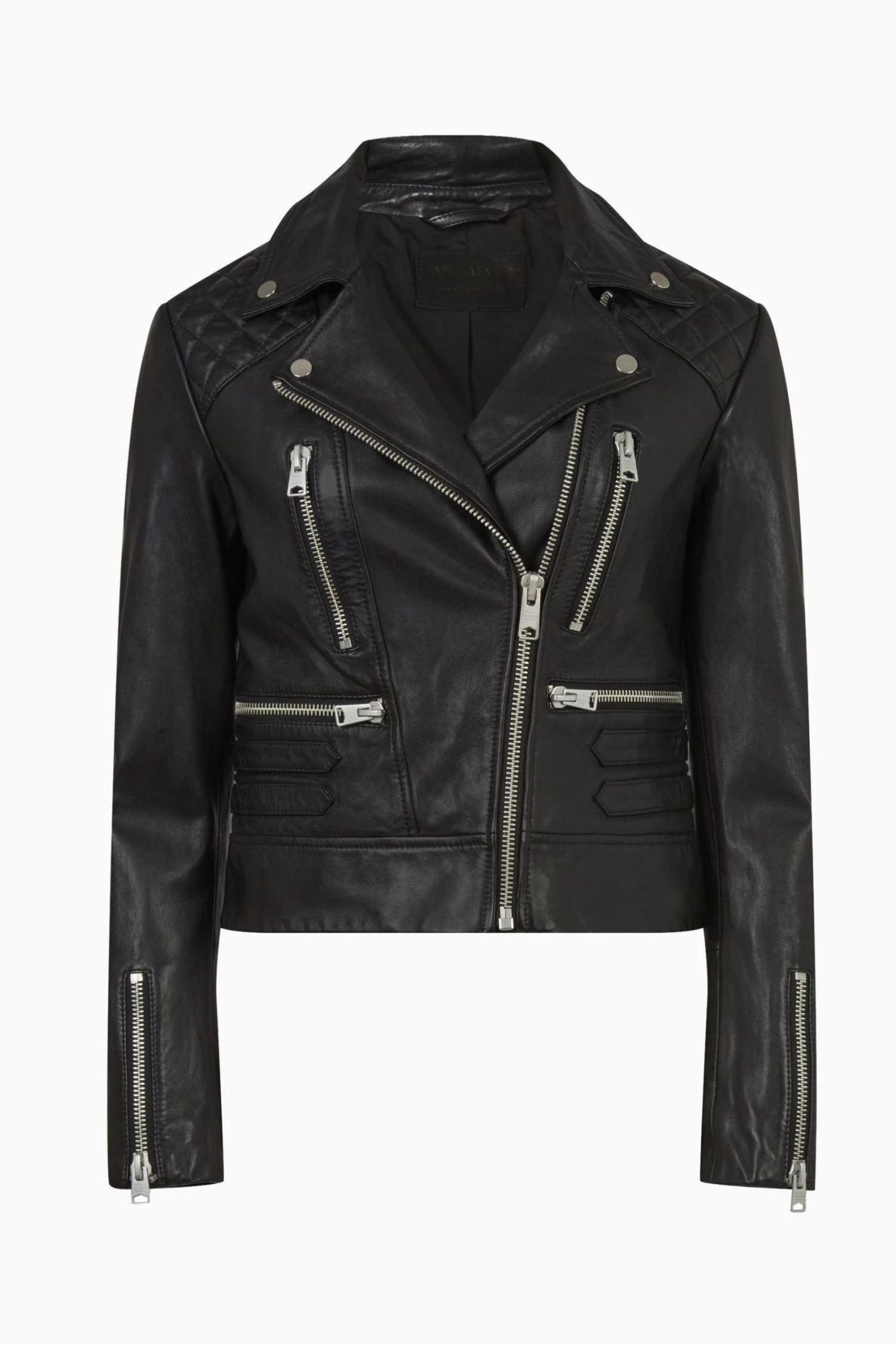 Zip closure. Slim fit. Collar. A slim fitting biker. four zip pockets; two at the breast position and two lower pocket. Diamond quilting at the front and back yoke The biker has a hem band detail and faux set in straps. the sulby biker is washed and tumbled to achieve high and lows. Full length sleeves with zip detail at the cuff. Sustainability Attribute: RECYCLED LININGS.