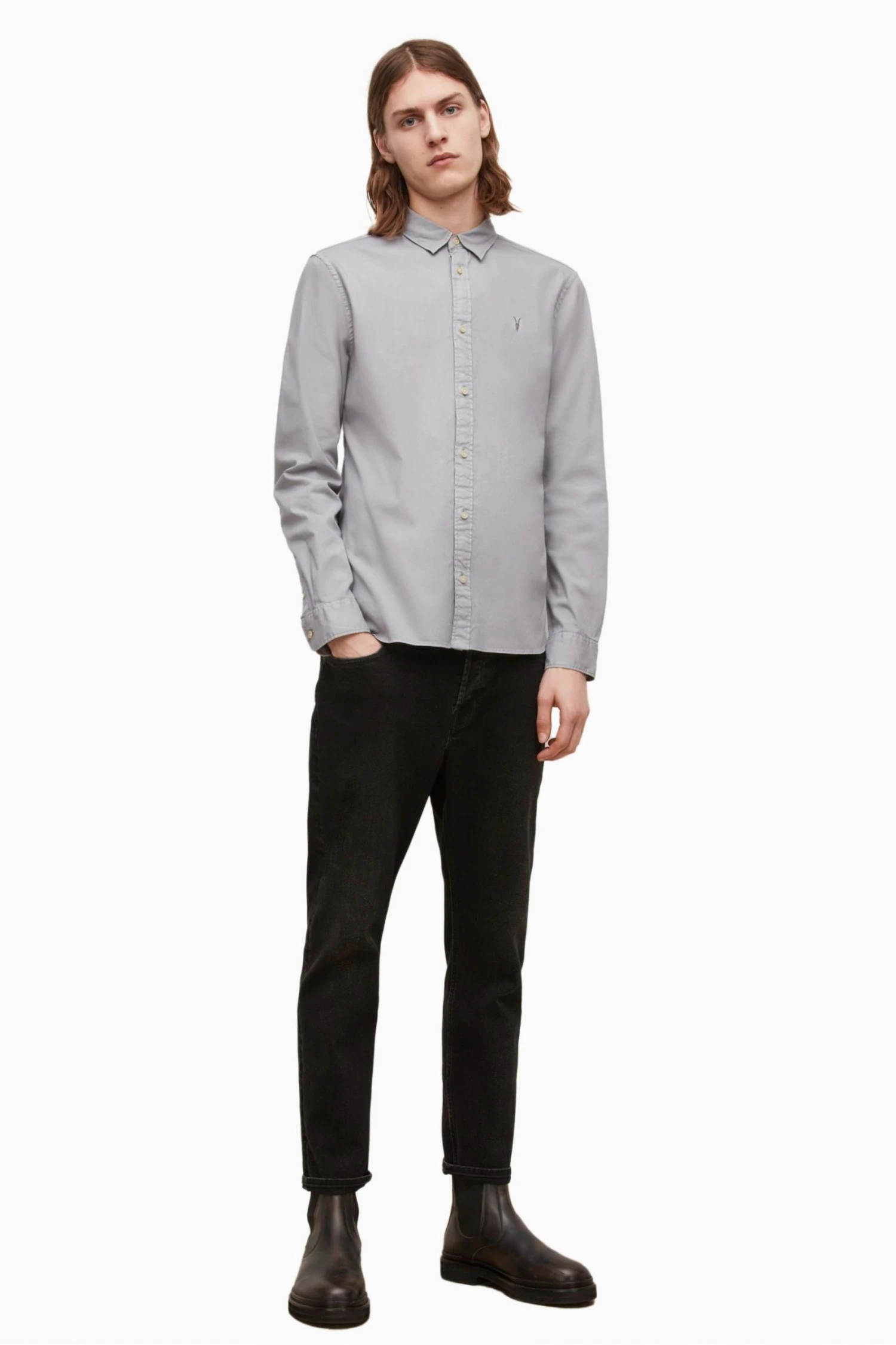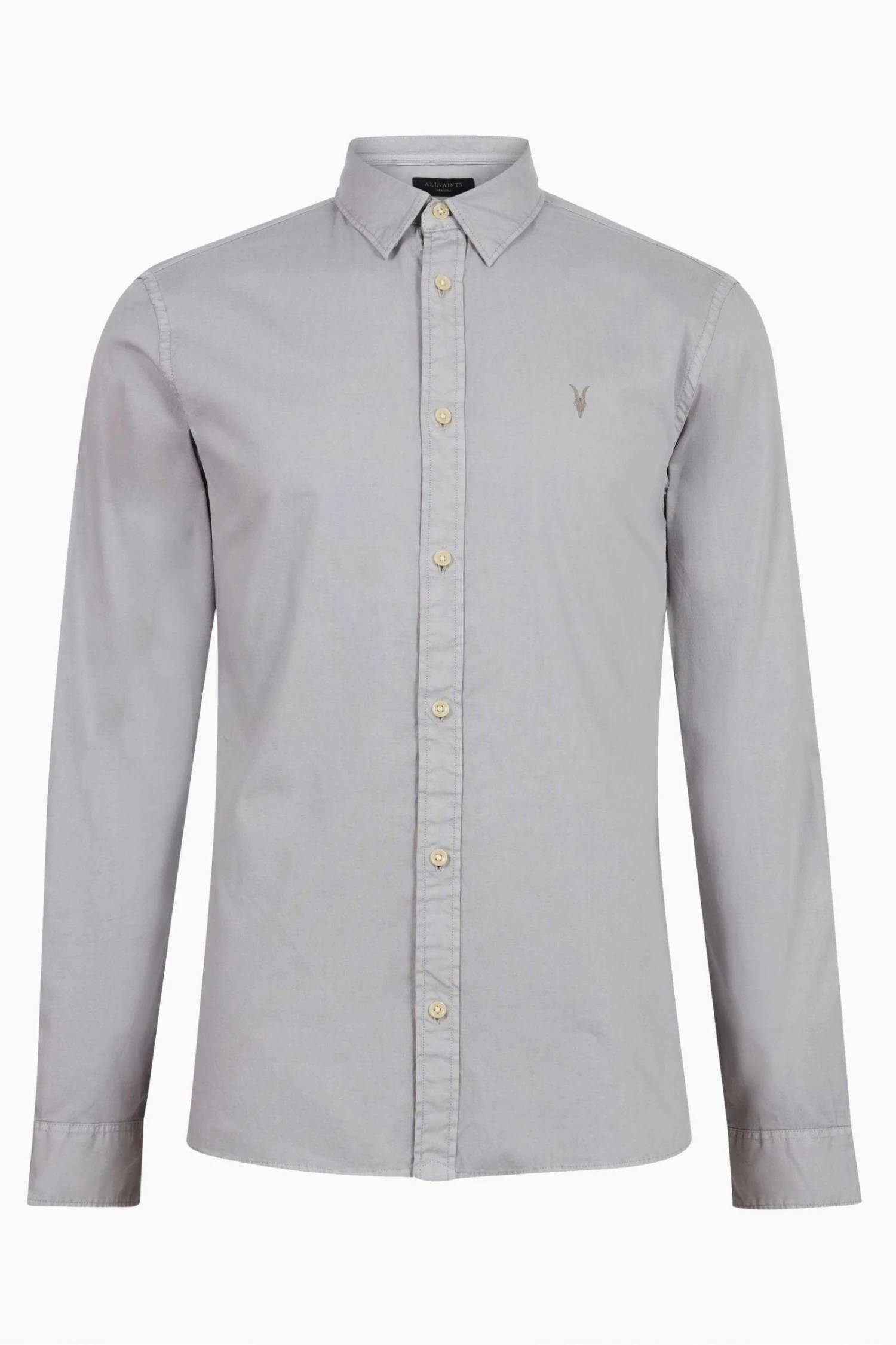 Designed with long sleeves, cuffed sleeves and button closure. Featuring ramskull embroidery. It is a stretch fit and slim fit.