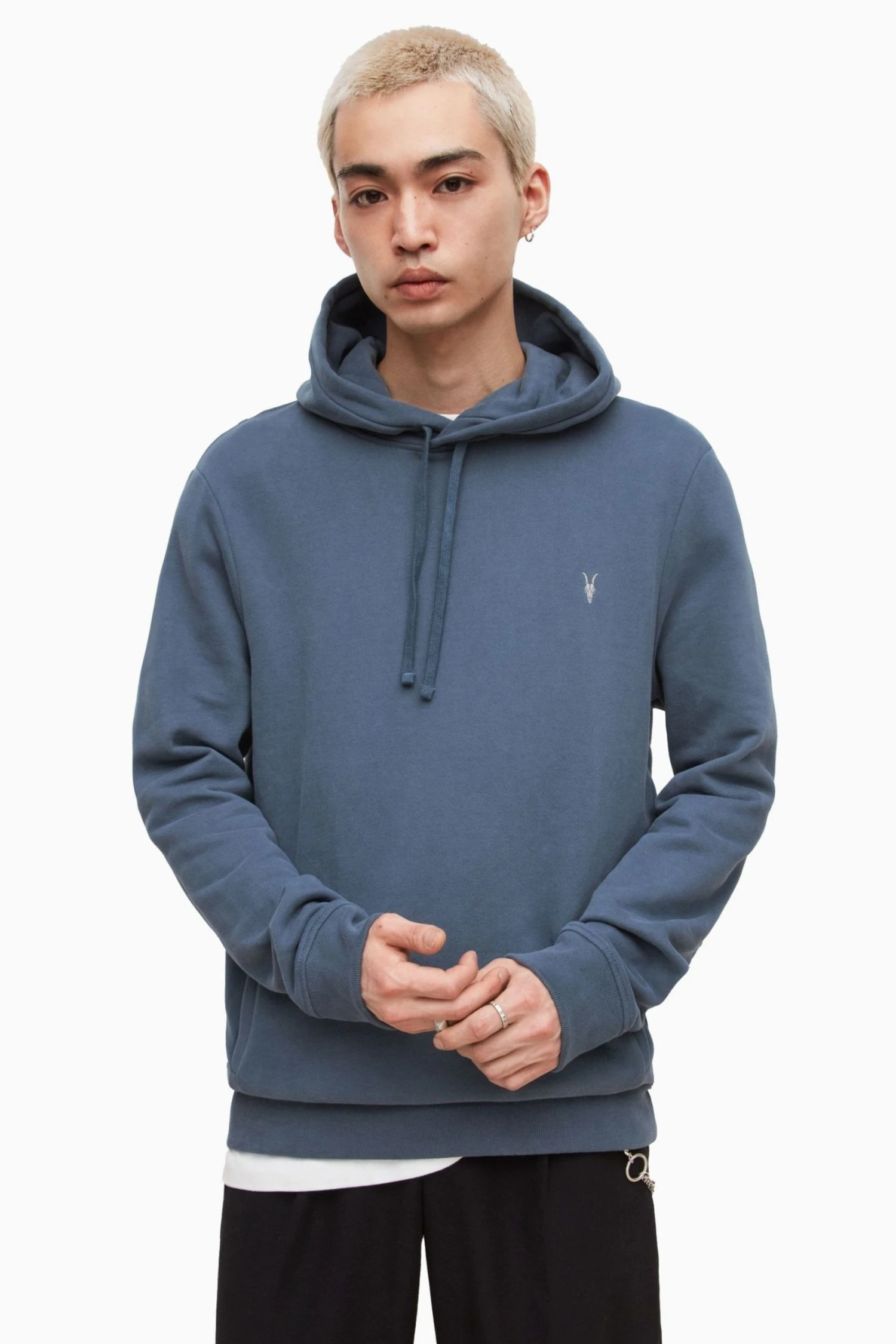 Ramskull embroidery on left front chest, carbon brush.