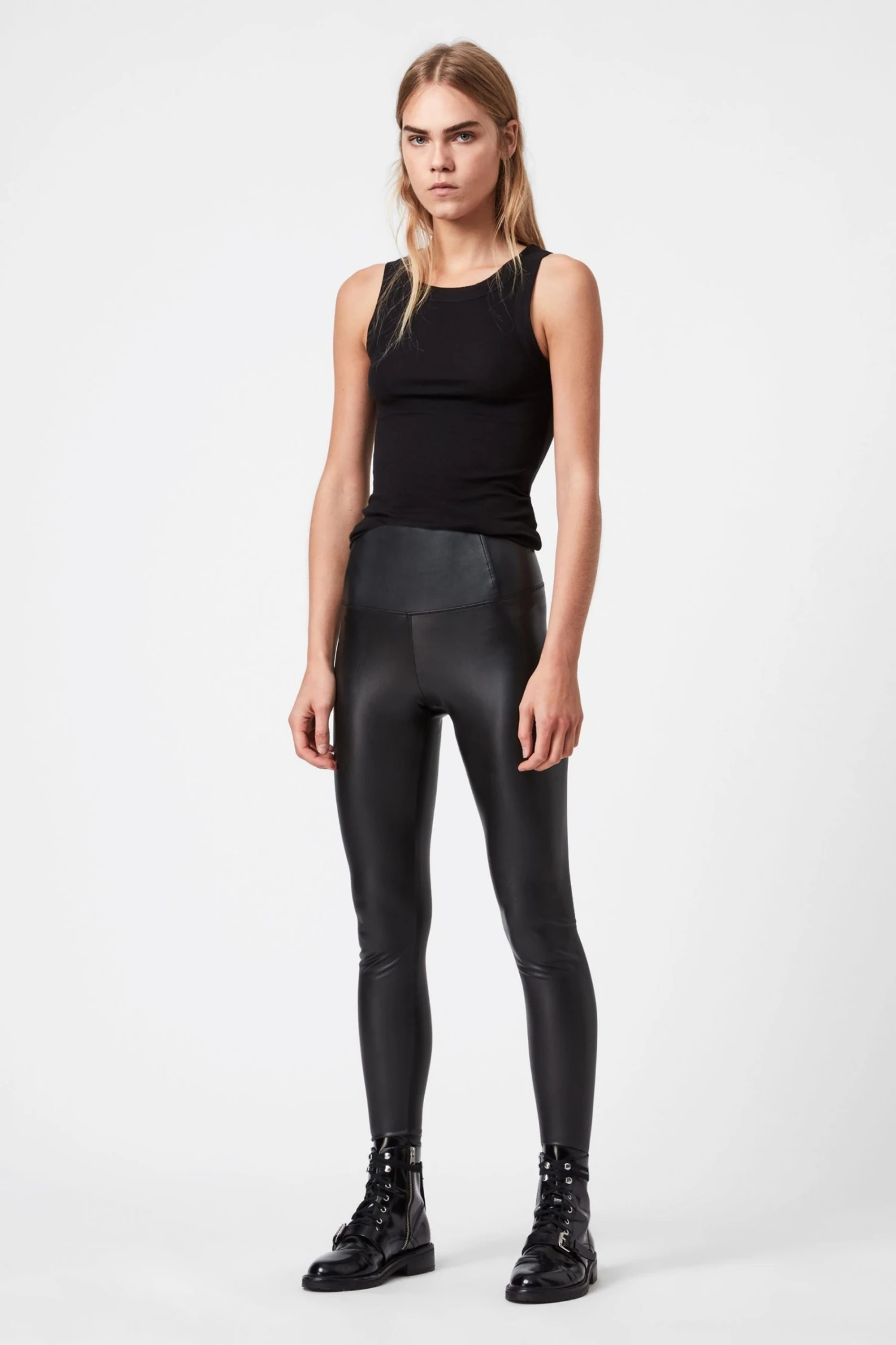 Super skinny. High waisted. Ankle length. Leather-look fabric.