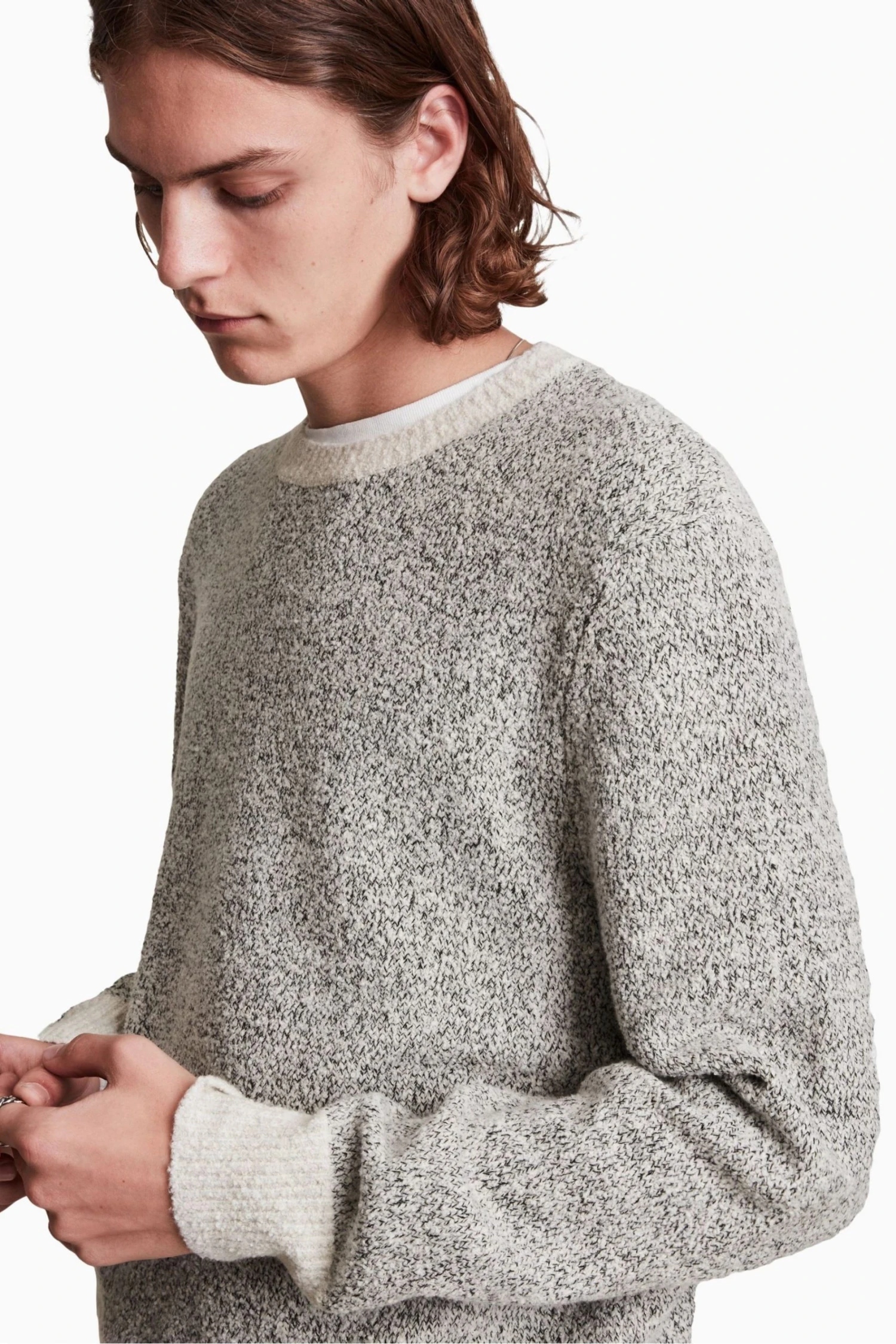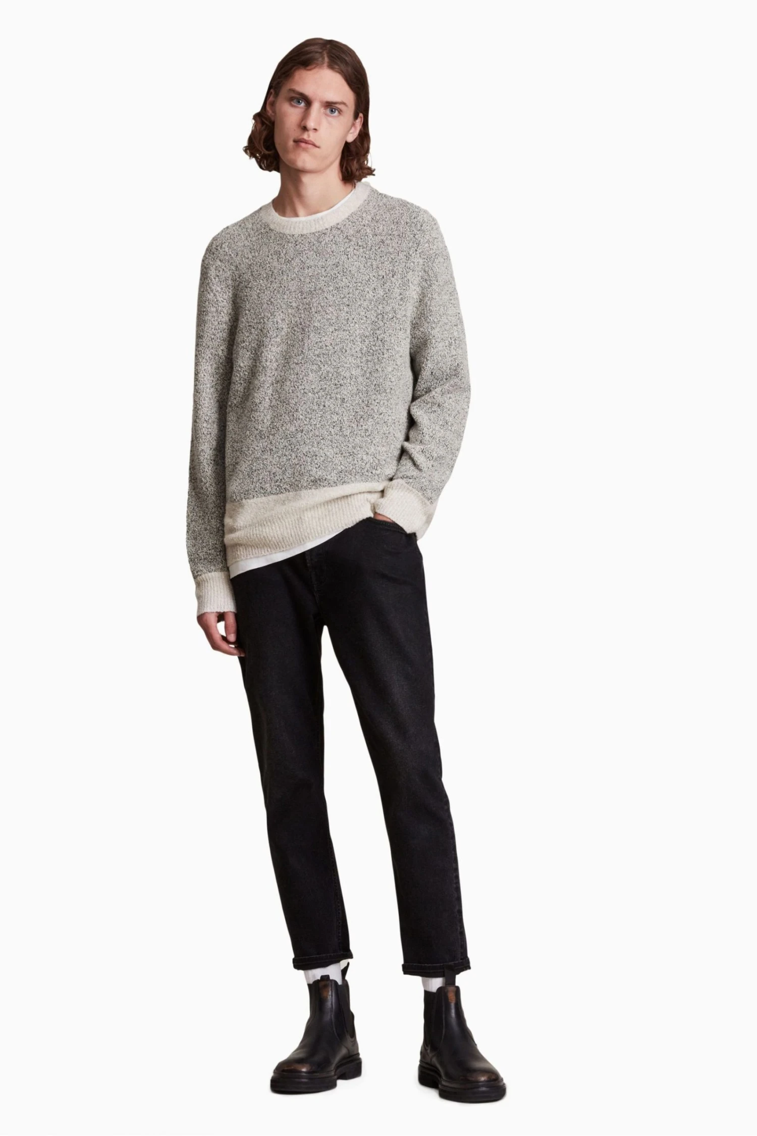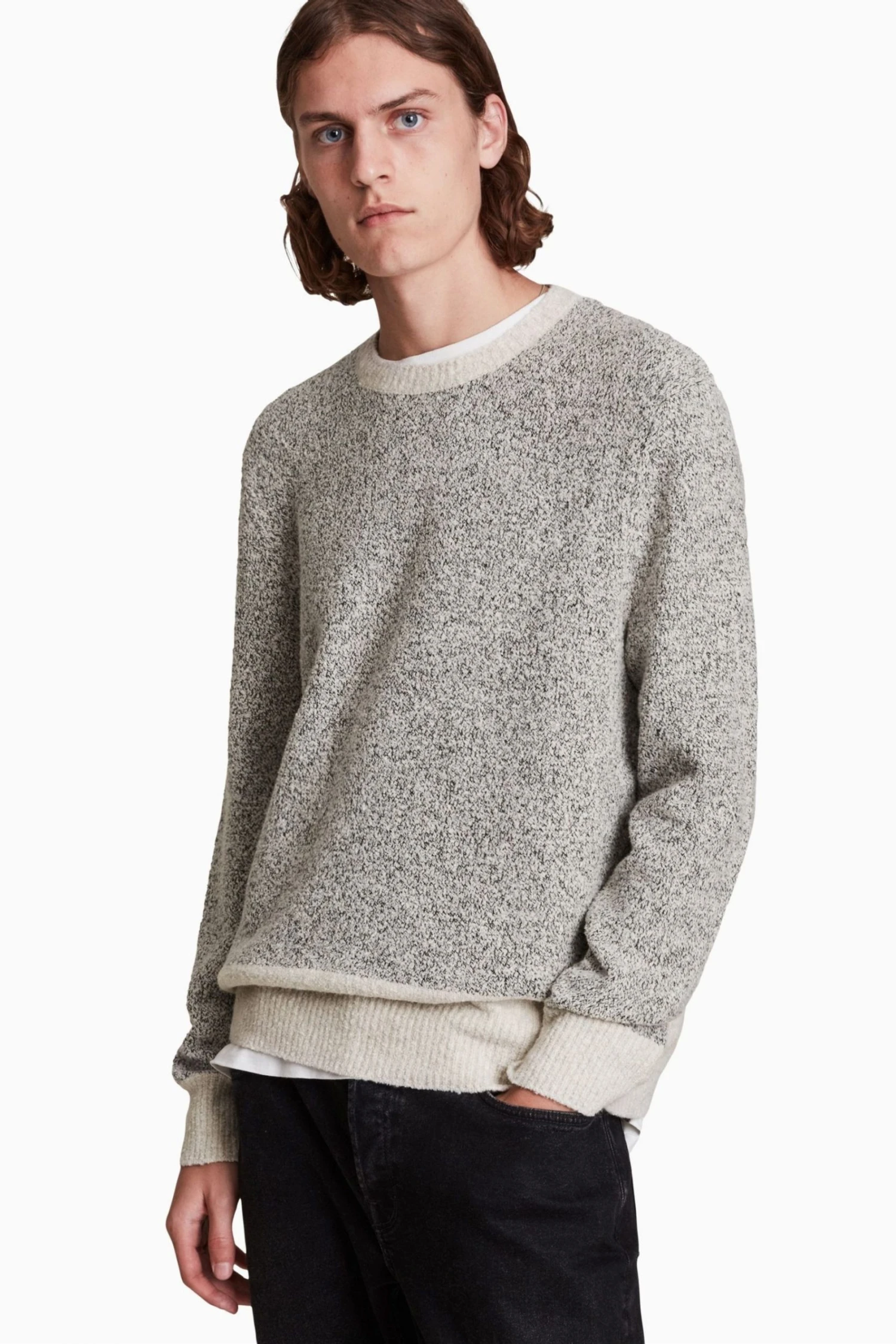 Pullover. Crew neck. Ribbed cuffs. Model is 6 4/193cm and is wearing size Medium.