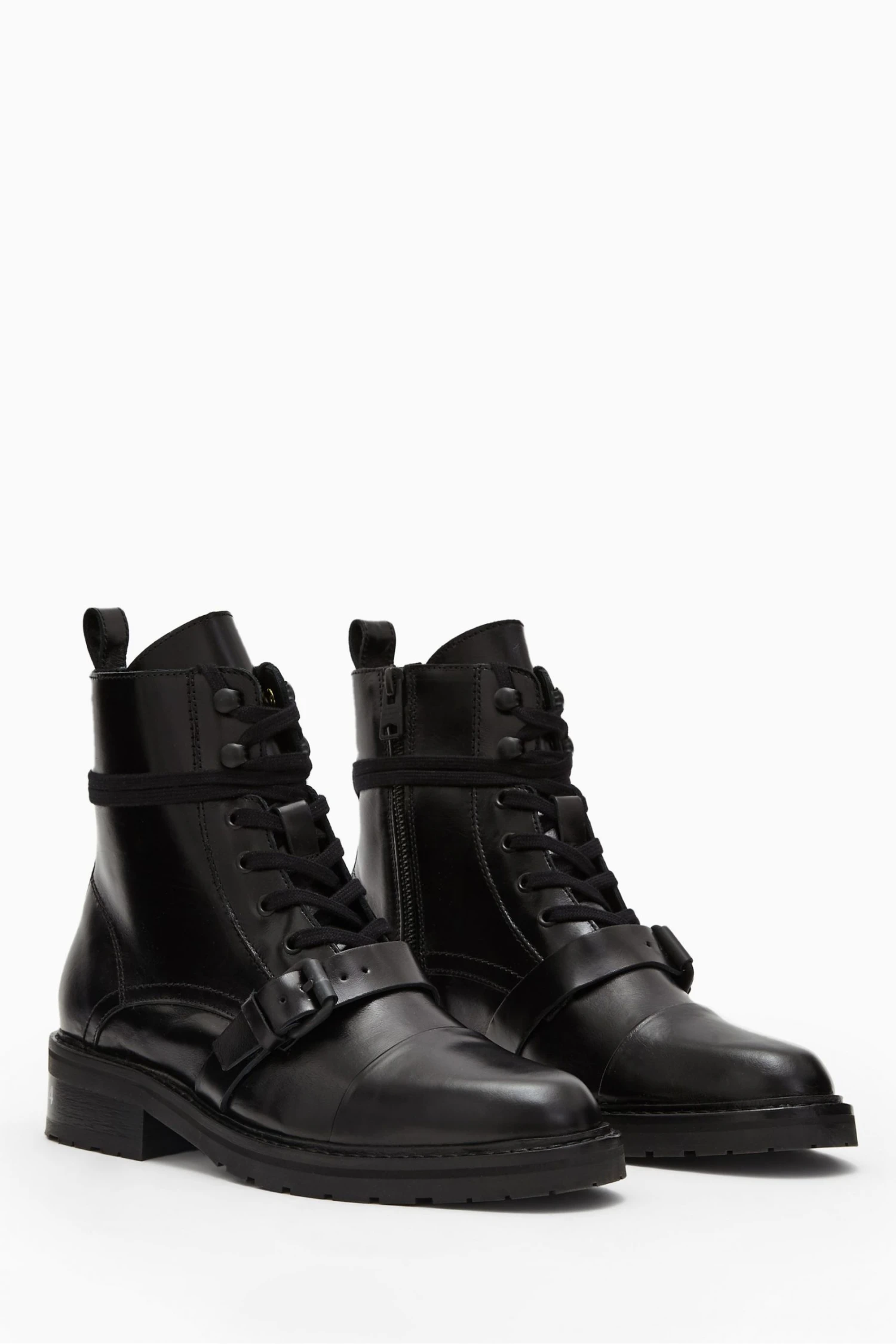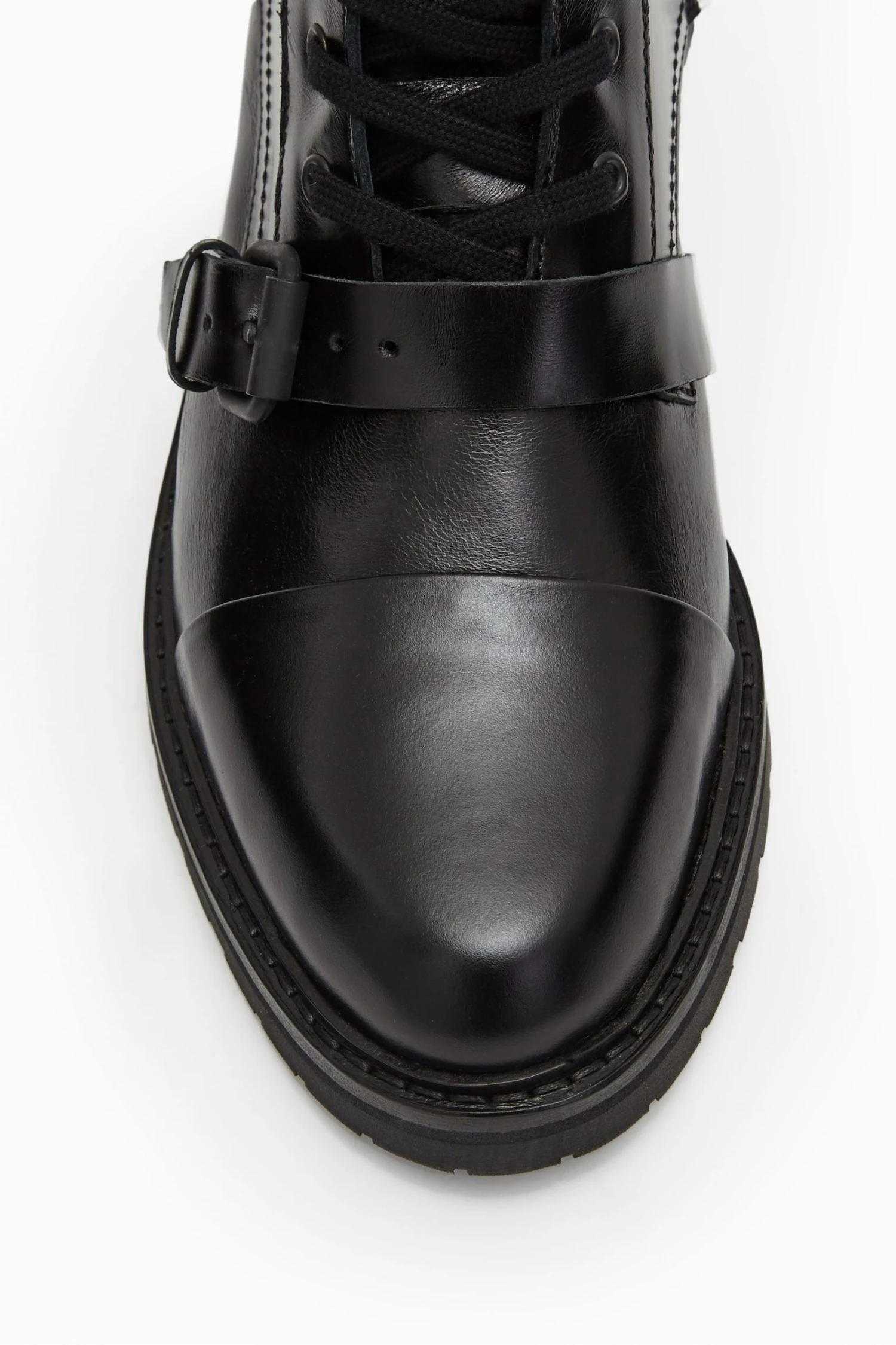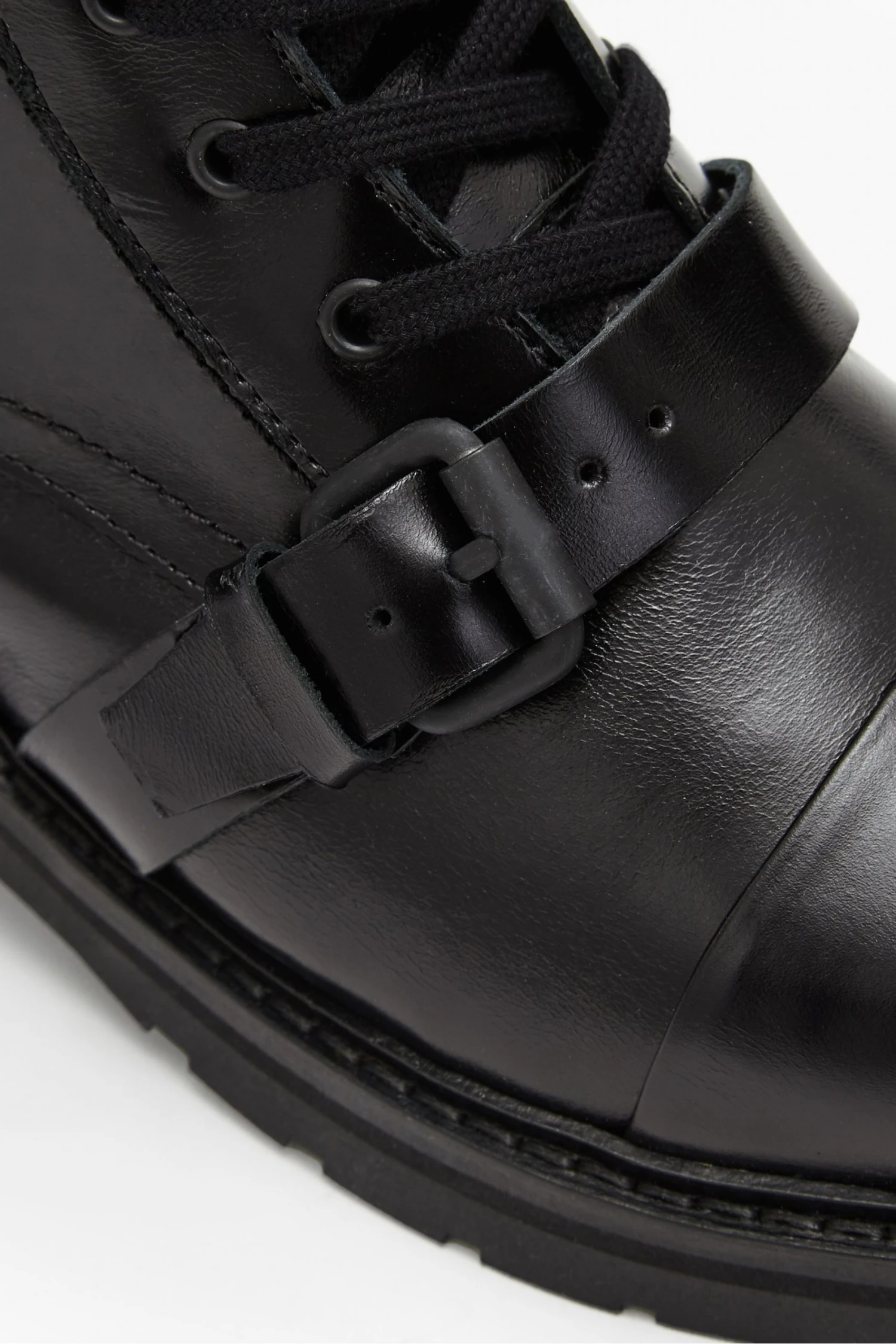 Featuring round toe, metal eyelets, rubber tread, wrap-around laces, strap across the toe and leather pull tab.