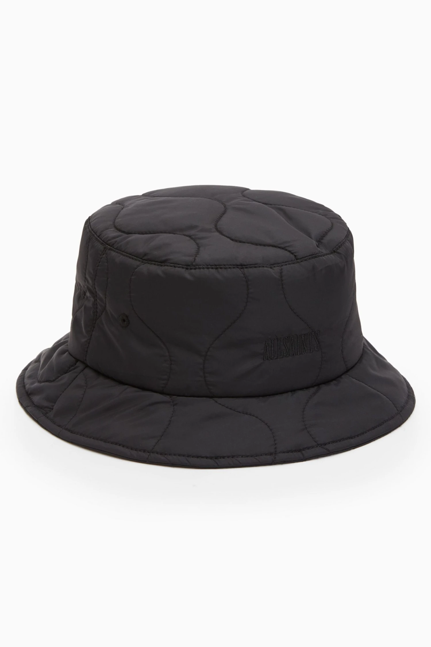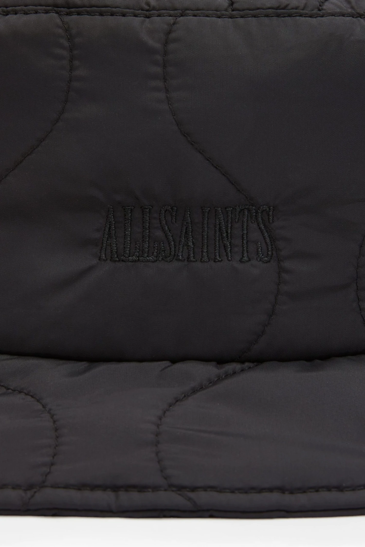 Sweatband. Quilted. AllSaints embroidery. Lined. Head circumference: 59cm. Crown height: 9cm, brim width: 6cm.