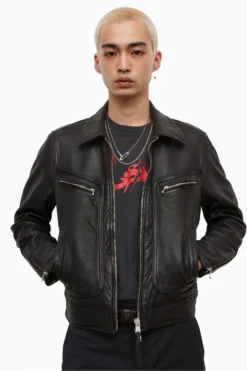 Regular. Do not wash. Do not bleach. Do not tumble dry. Line drying in shade. Do not iron. Do not dry clean. Professional leather clean only. Do not leave in direct sunlight as colour will fade. Colour may transfer onto other garments and upholstery. Avoid exposure to rain and moisture as colour may transfer.