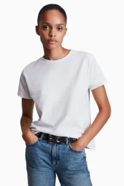 Pullover. Crew neck. Short sleeve. Relaxed fit. AllSaints embroidered Ramskull. ALLSAINTS cotton products support more sustainable cotton farming. Better Cotton is sourced via a system of Mass Balance.