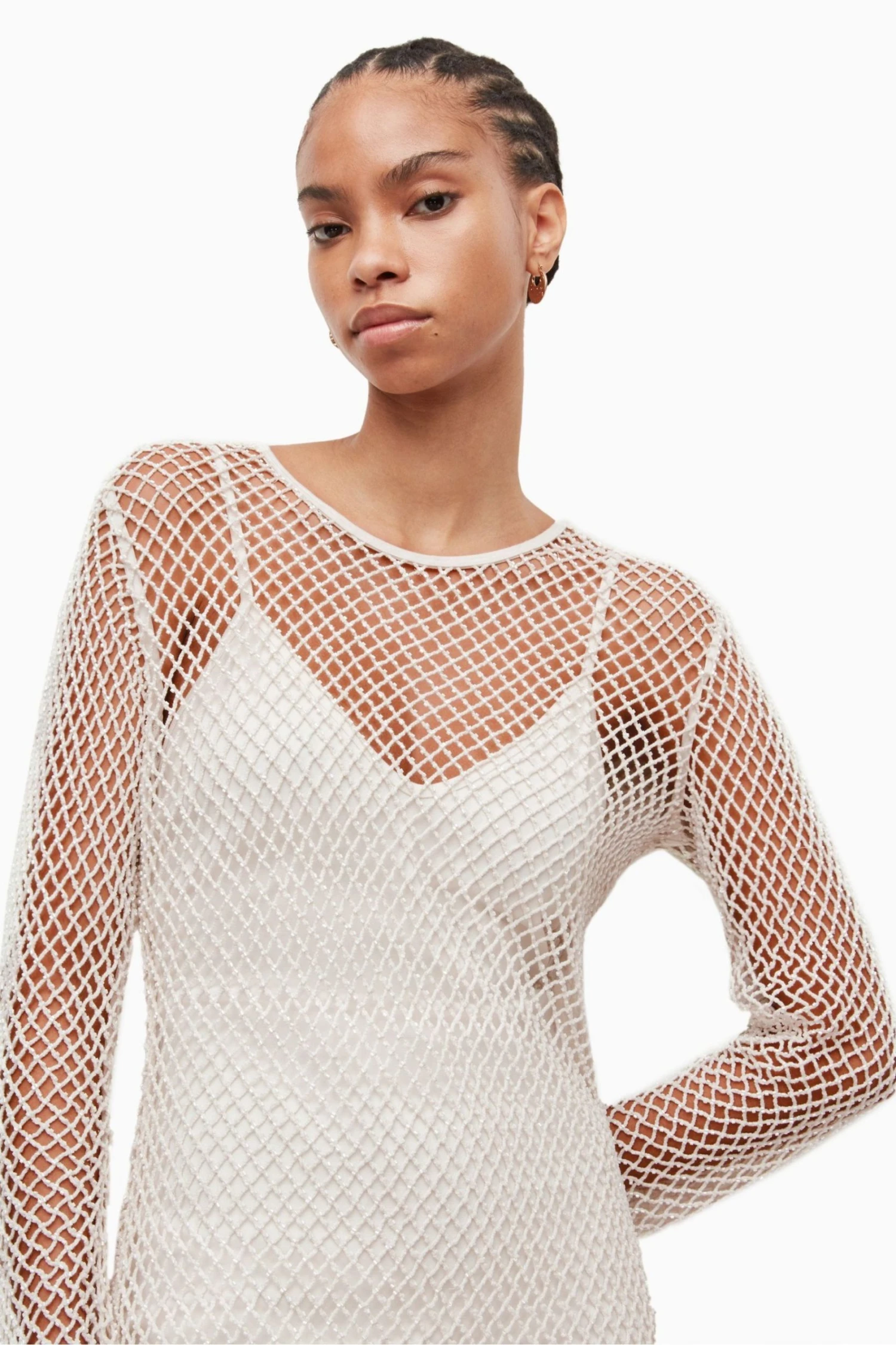Designed with back zip closure, crew neck, long sleeves. Fully embellished mini dress and has a back zip which is open ended. It’s a slip dress in a jersey bodycon fabric made with slip dress lining.