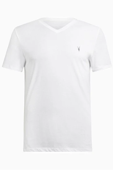 Pullover featuring V-Neck, short sleeve and ramskull embroidery.