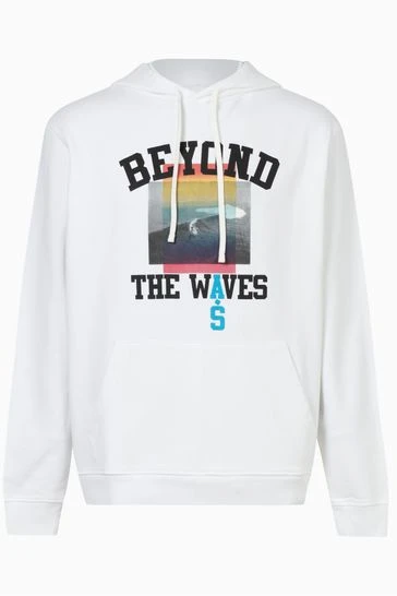 Its relaxed fit pullover hoodie. Vintage surf and collegiate inspired graphic printed at chest with Kangaroo pocket.