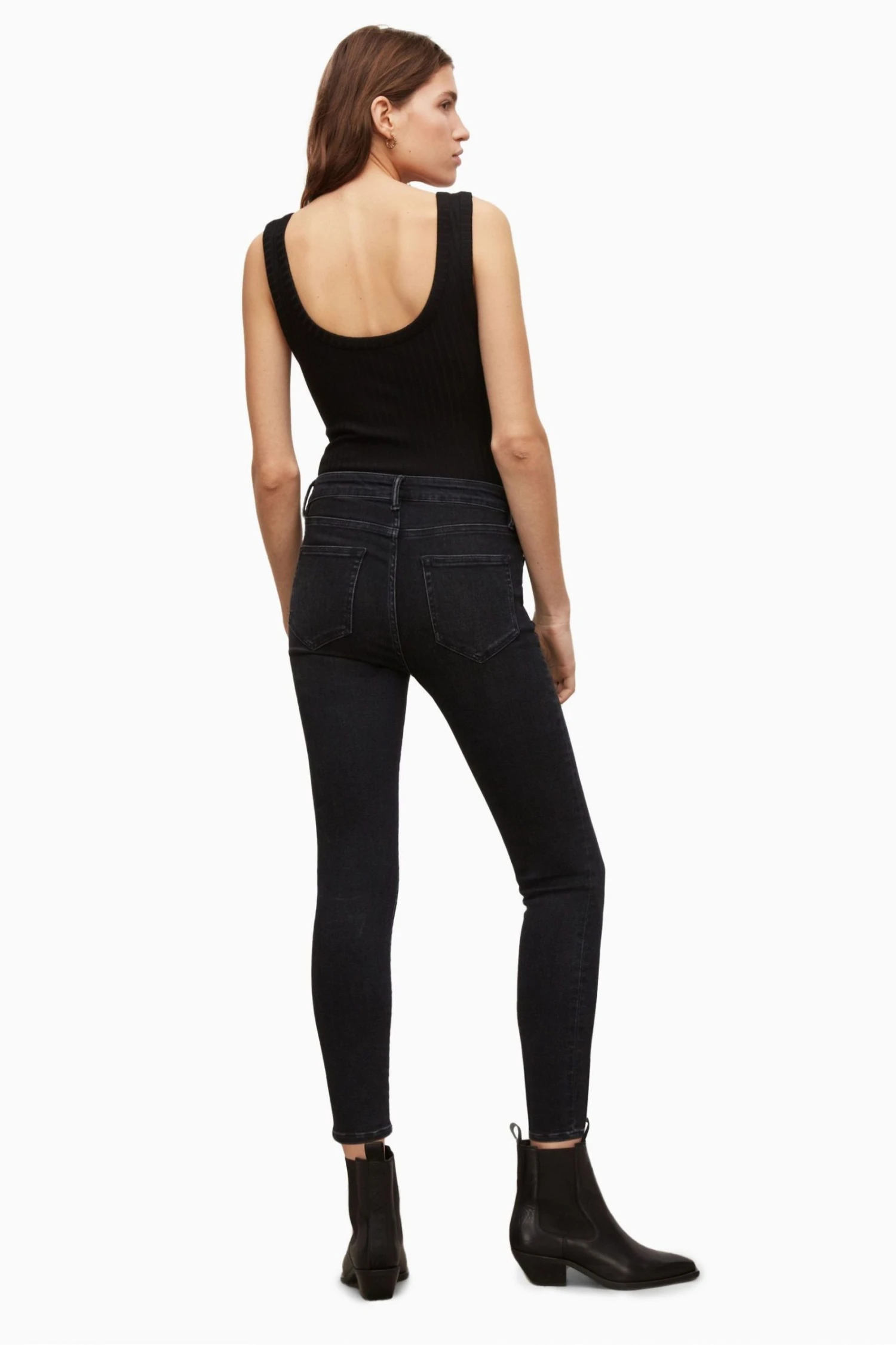 Introducing the Miller. Crafted from power stretch denim with a soft handfeel, they’re designed to stay soft over time. Shaped to a mid-rise silhouette and constructed with an added push up effect. These jeans are sure to flatter. Full length. Mid-rise. Zip closure. Vegan leather washer. Five pockets. Reinforced pockets. Rope in the belt loops. Superstretch. Model is 5’11″/180.5cm and is wearing size 27. ALLSAINTS cotton products support more sustainable cotton farming. Better Cotton is sourced via a system of Mass Balance.