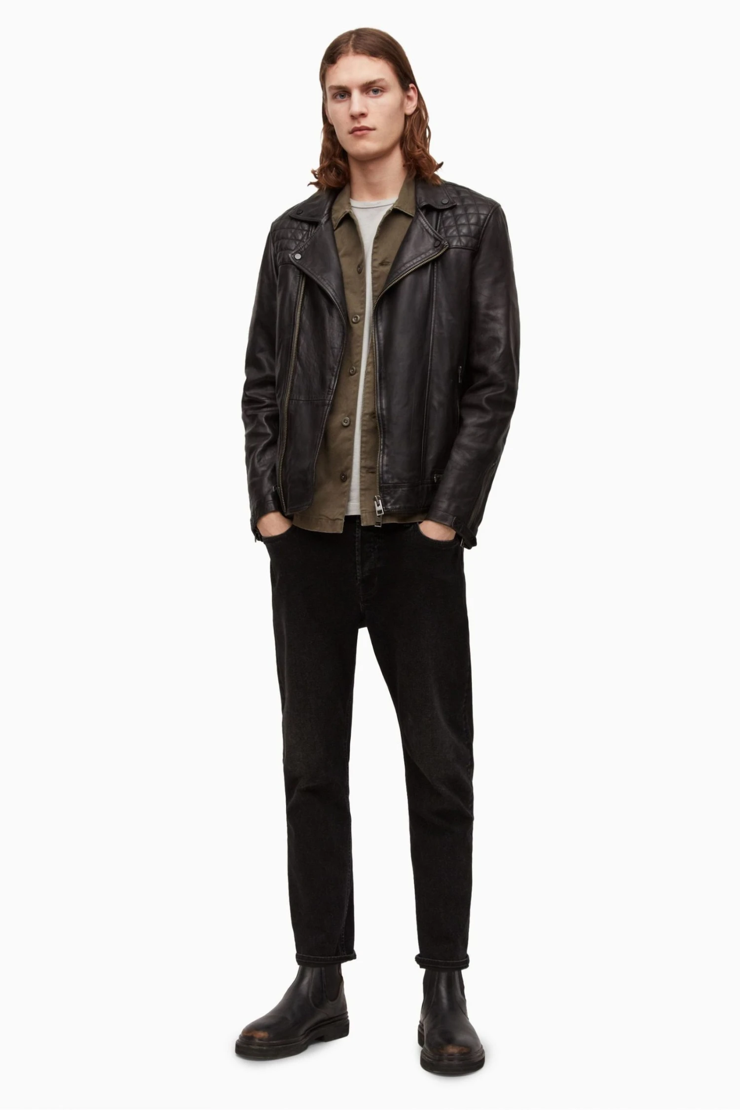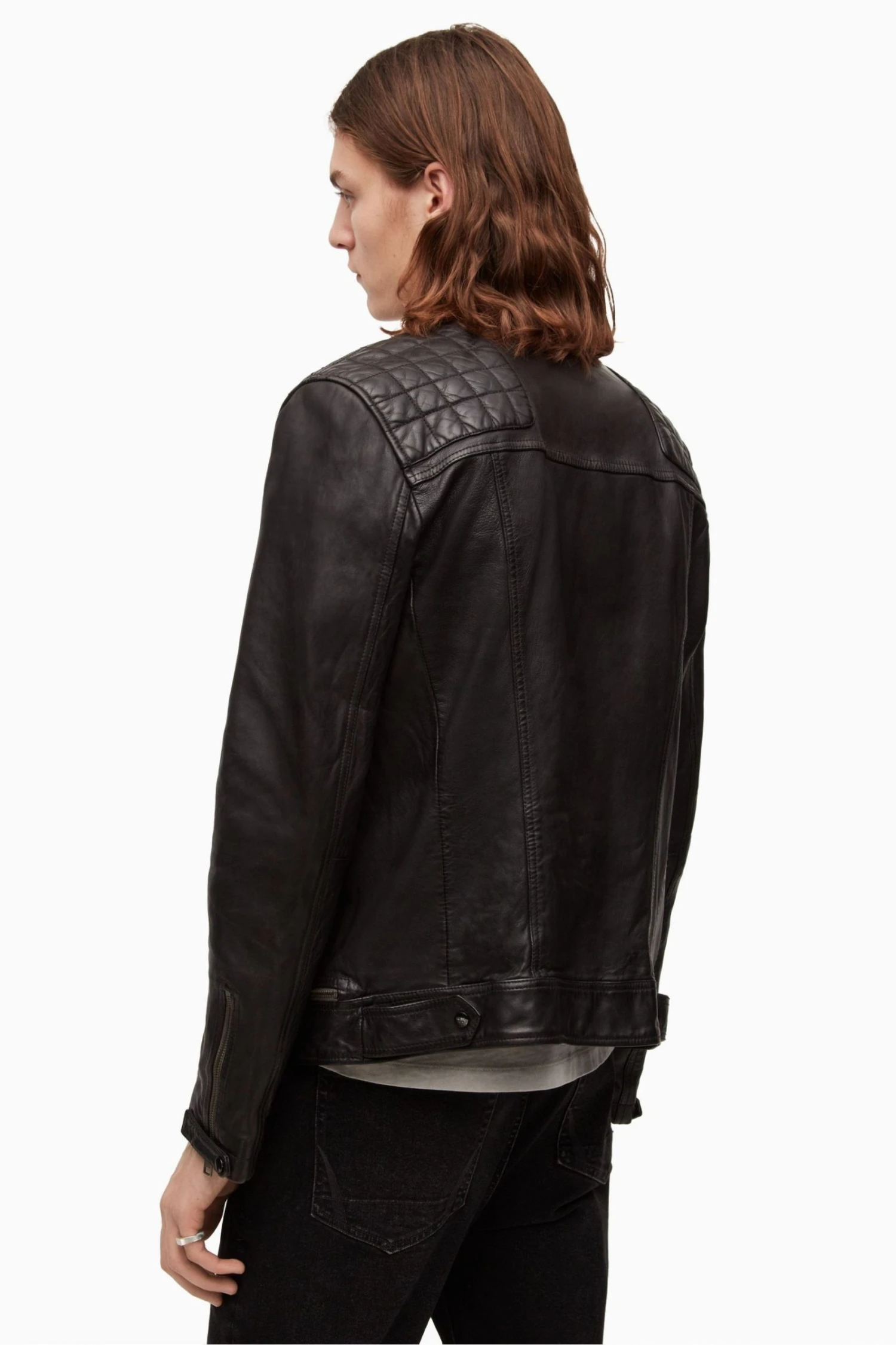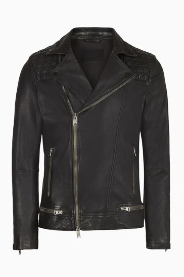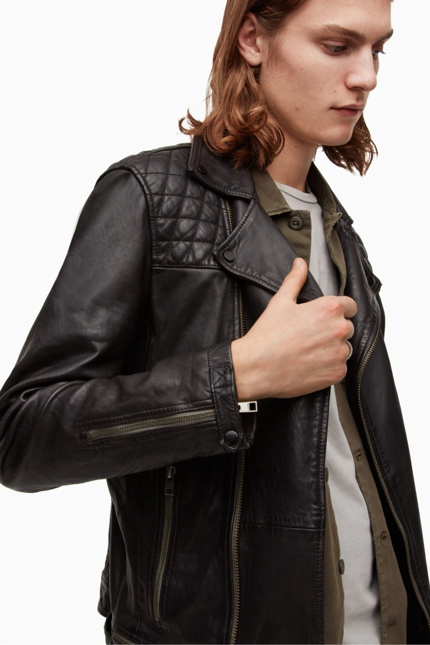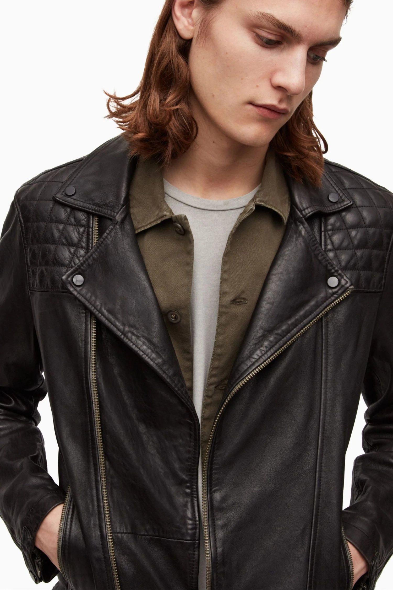 Featuring long sleeves, quilted shoulder panels, zipped cuffs, asymmetric zip and side zip pockets.