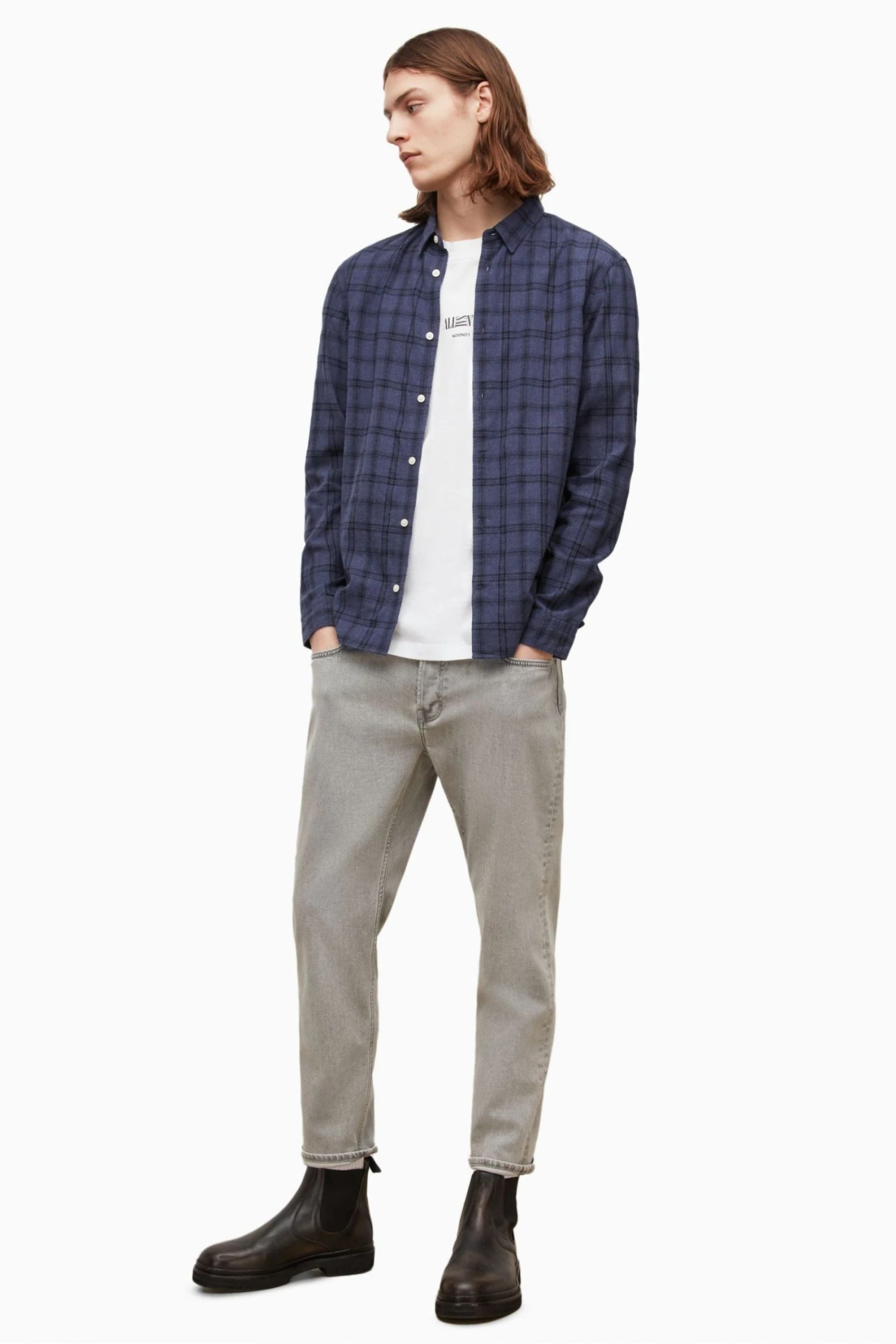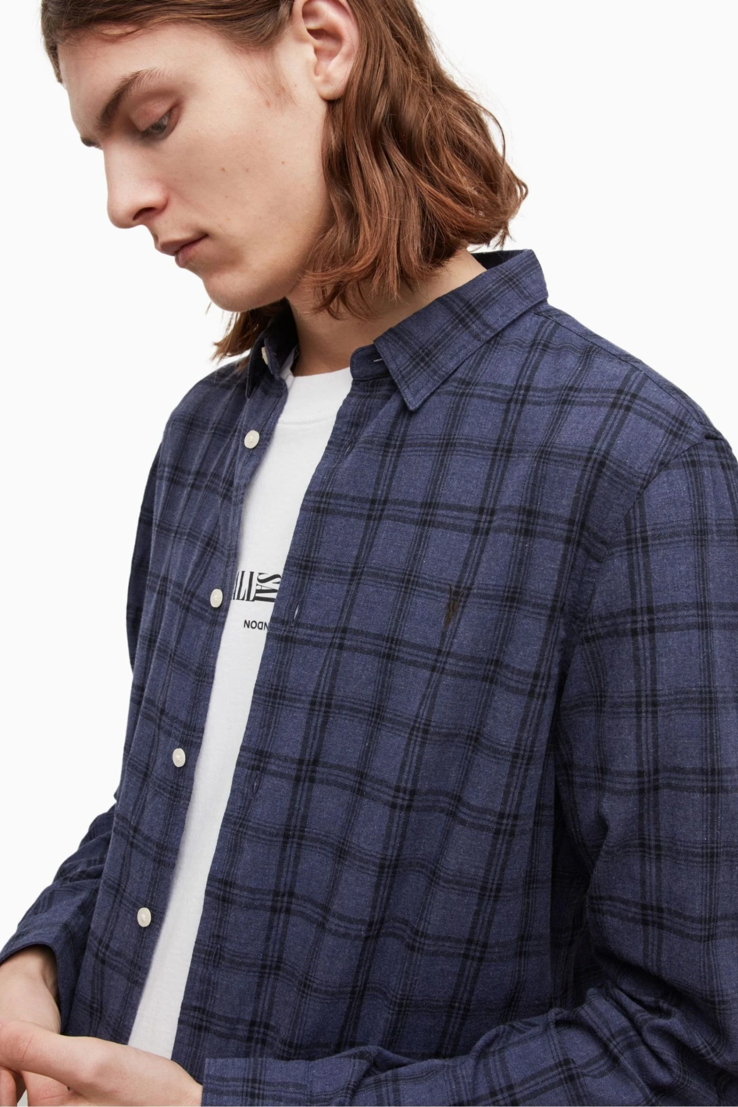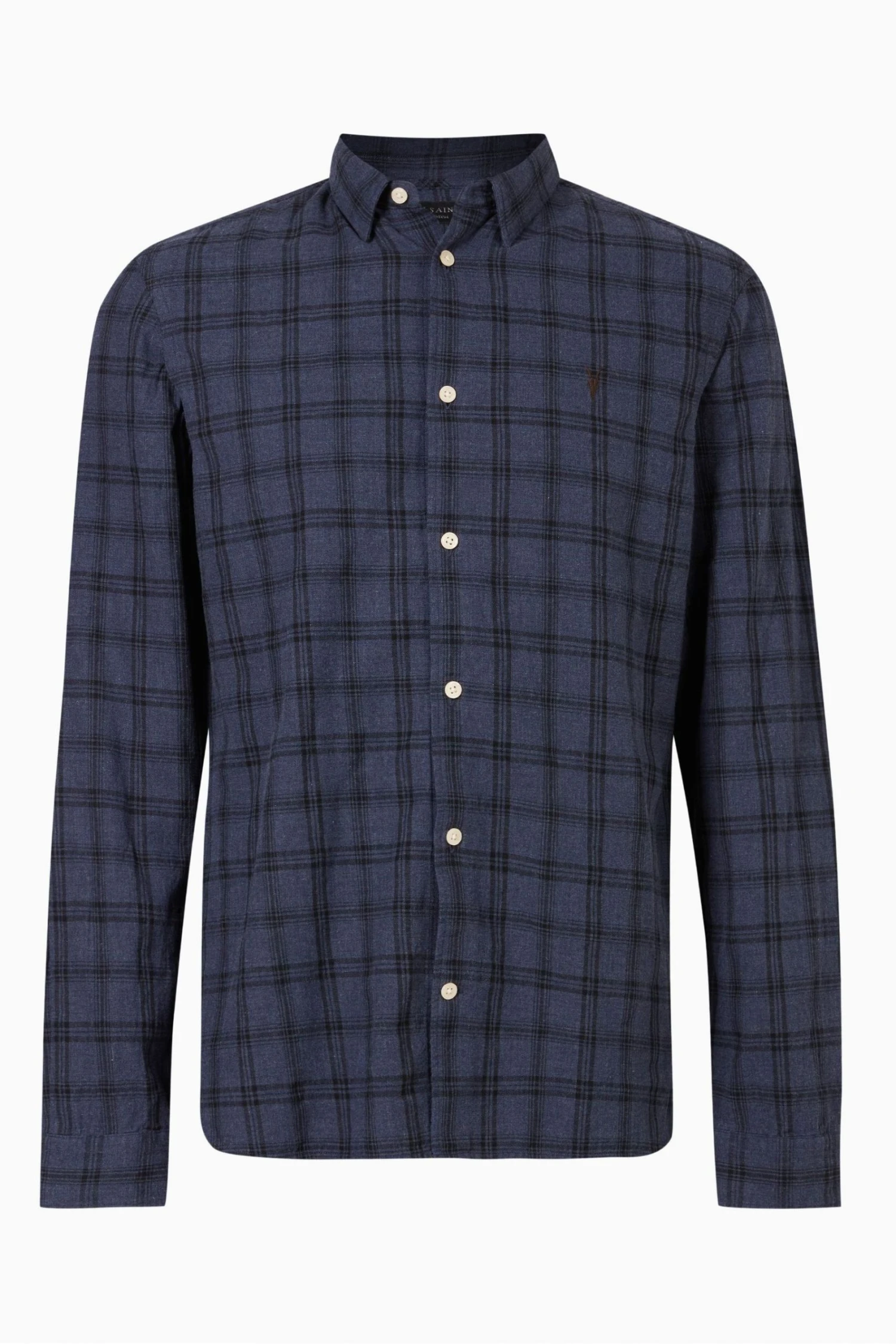 Slim fit Shirt with long sleeves, classic collar and buttons. Brushed flannel yarn dye check with concealed button down collar and ramskull embroidery branding at the left chest.