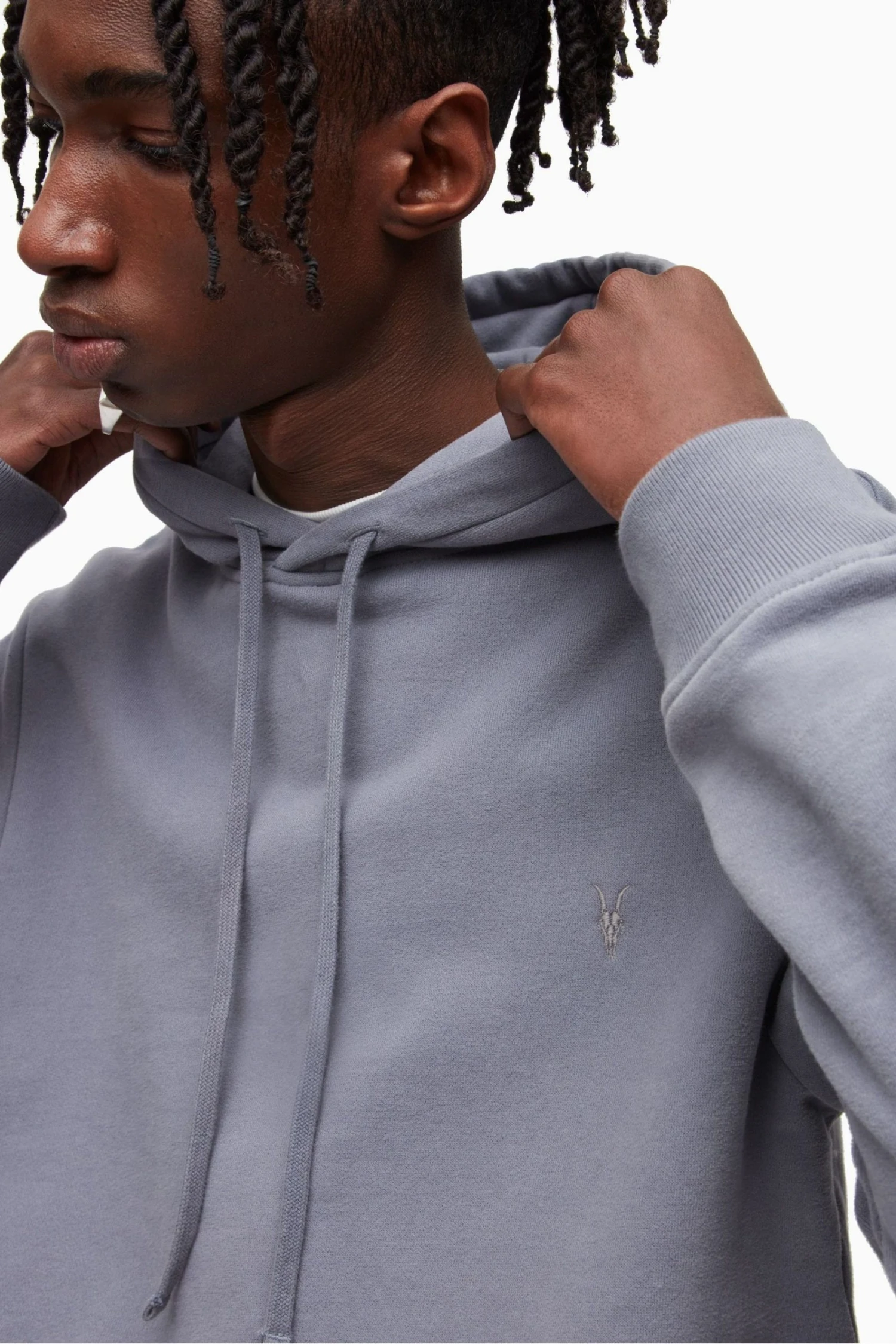 Its a regular fit pullover with long sleeves and Ramskull embroidery on left front chest and carbon brush with welted pocket.