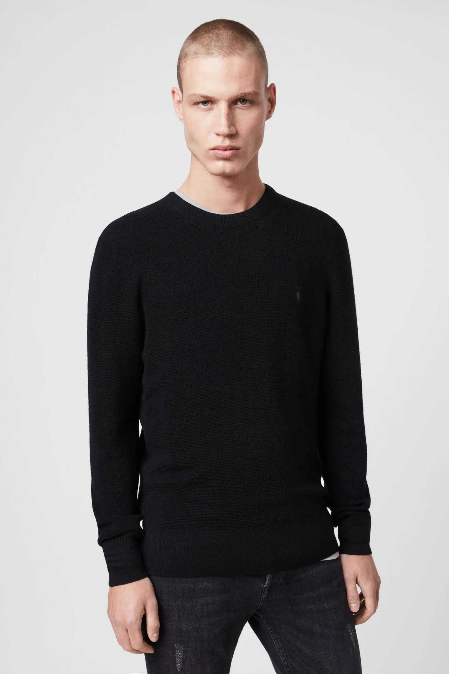 Pullover. Crew neck. Waffle knit. Long sleeve. Ramskull embroidery. RWS certified wool