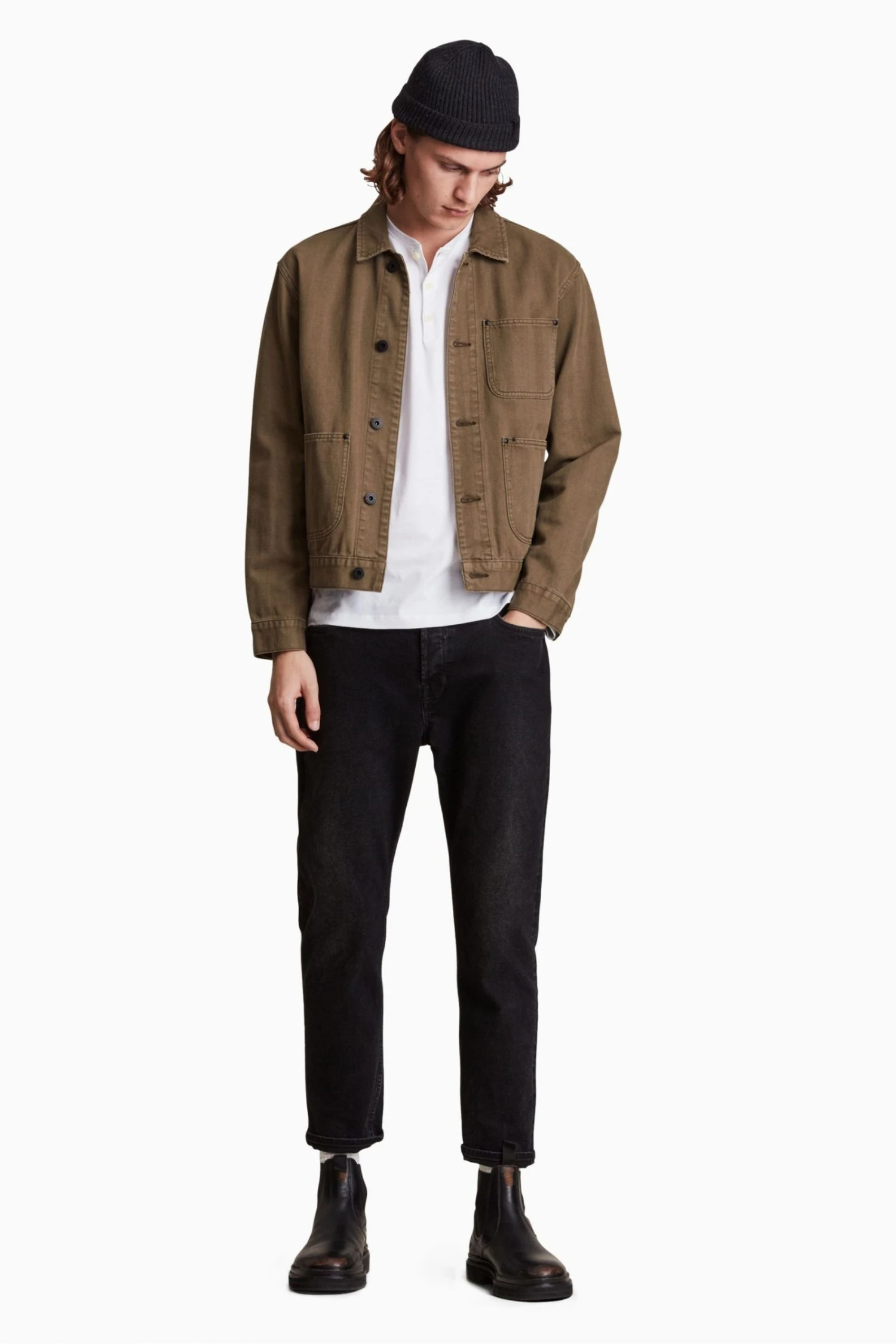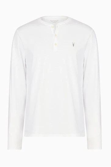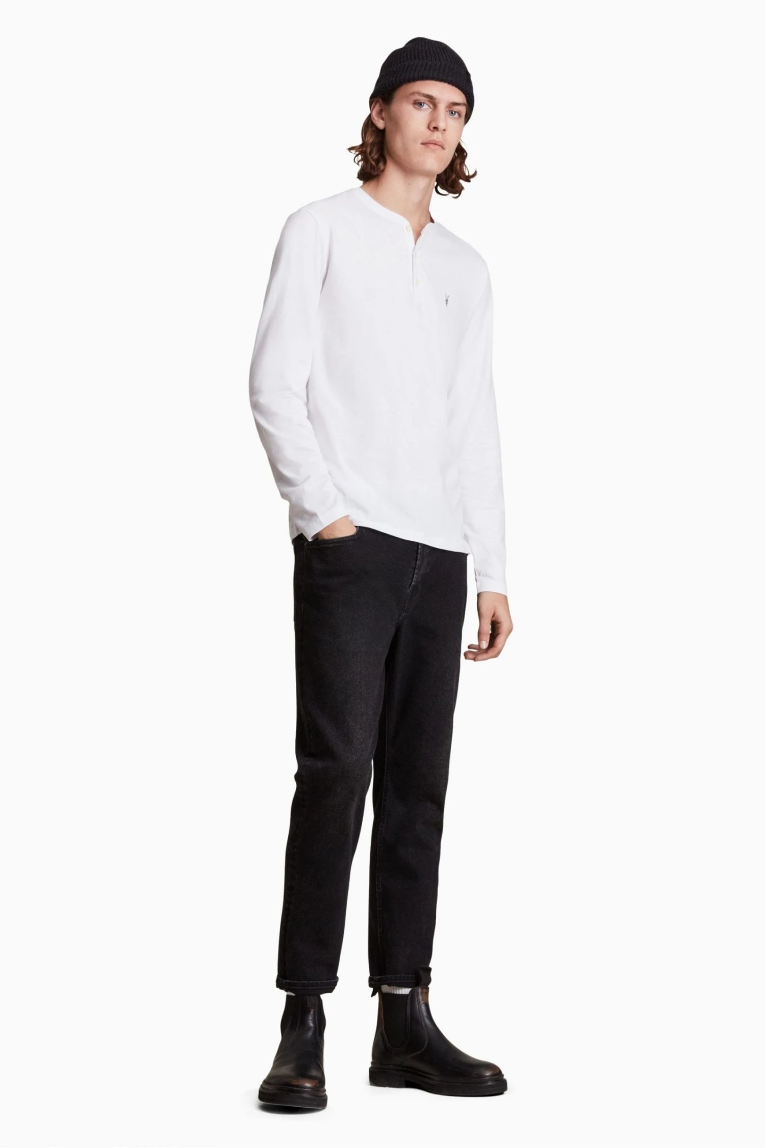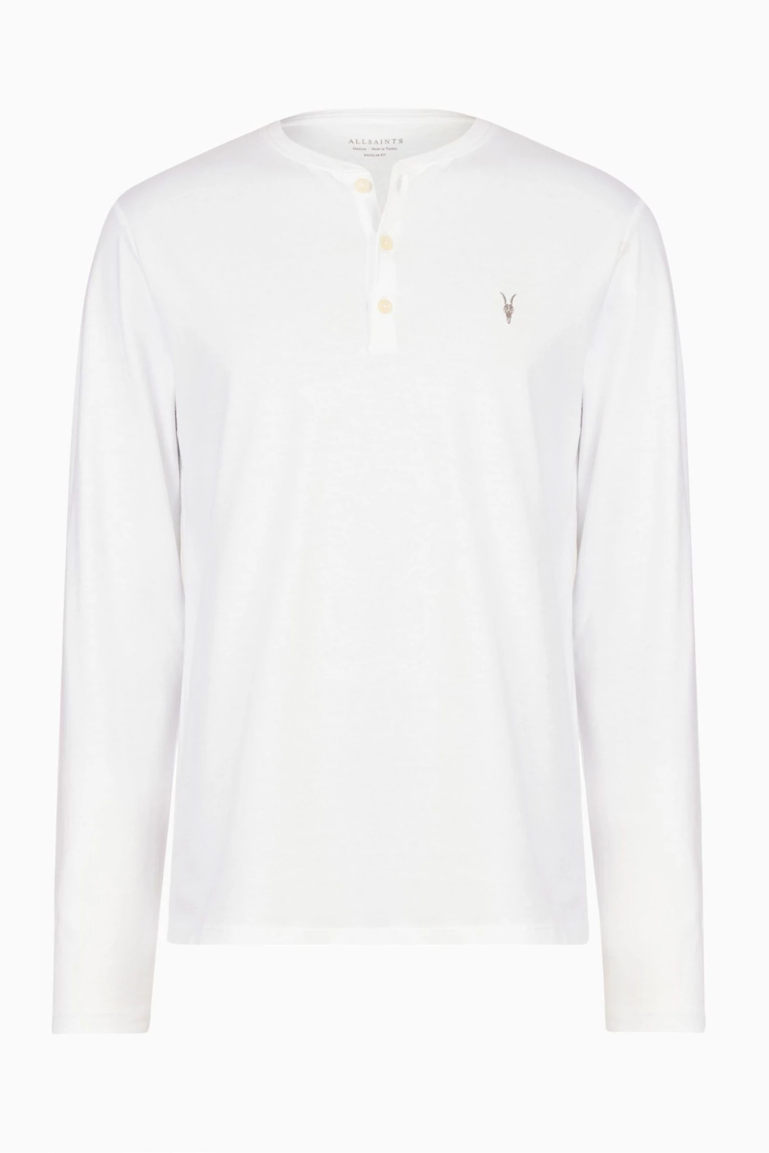 Pullover. Buttoned placket. Long sleeve. Carbon brushed cotton. Ramskull embroidery.